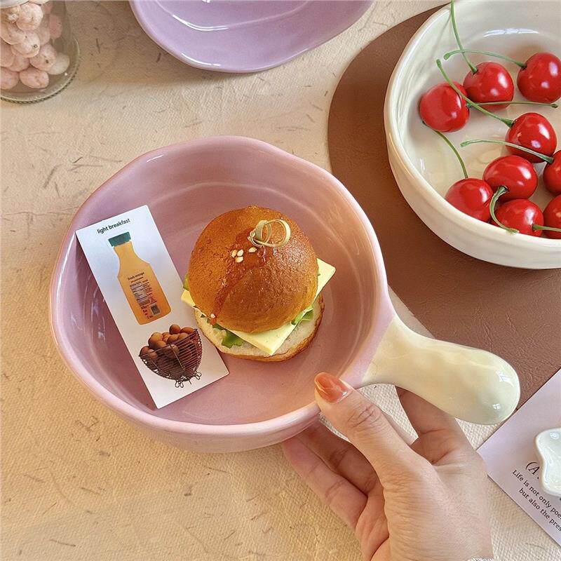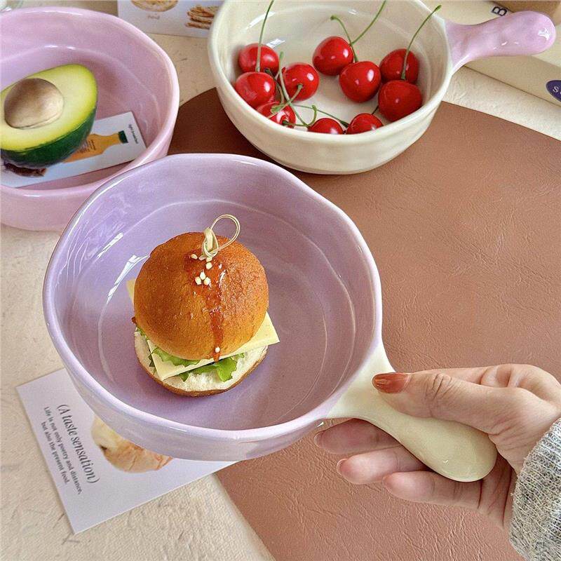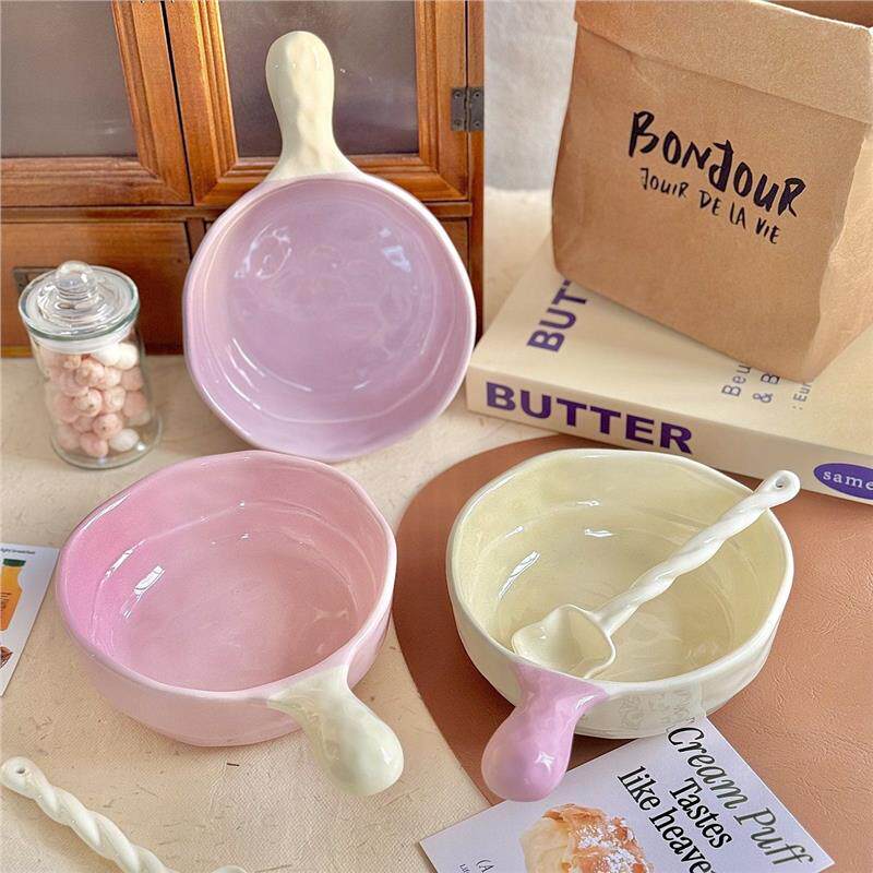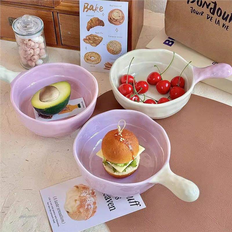 高颜值手柄碗烤碗家用泡面碗螺蛳粉汤碗酸奶碗水果沙拉碗餐具韩系