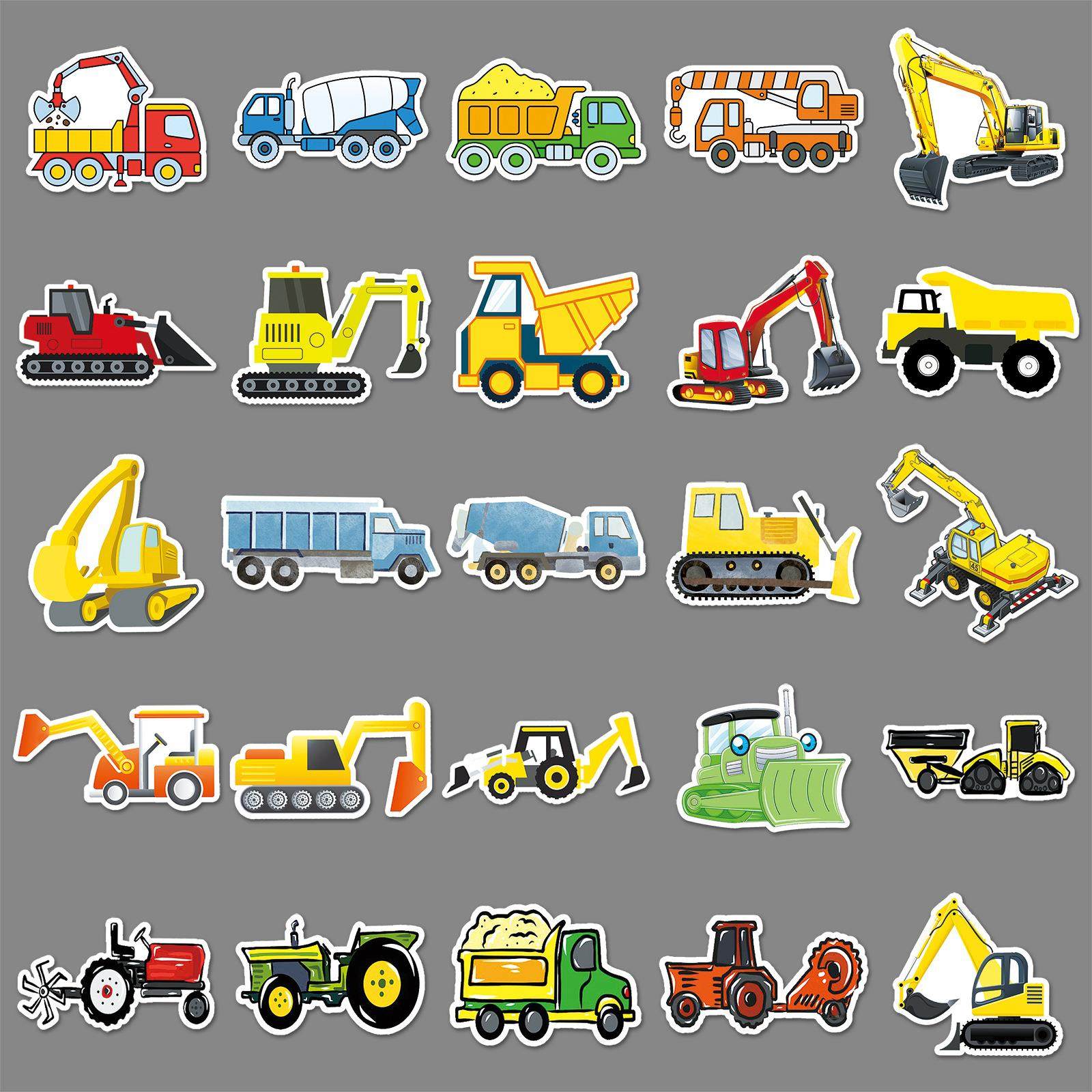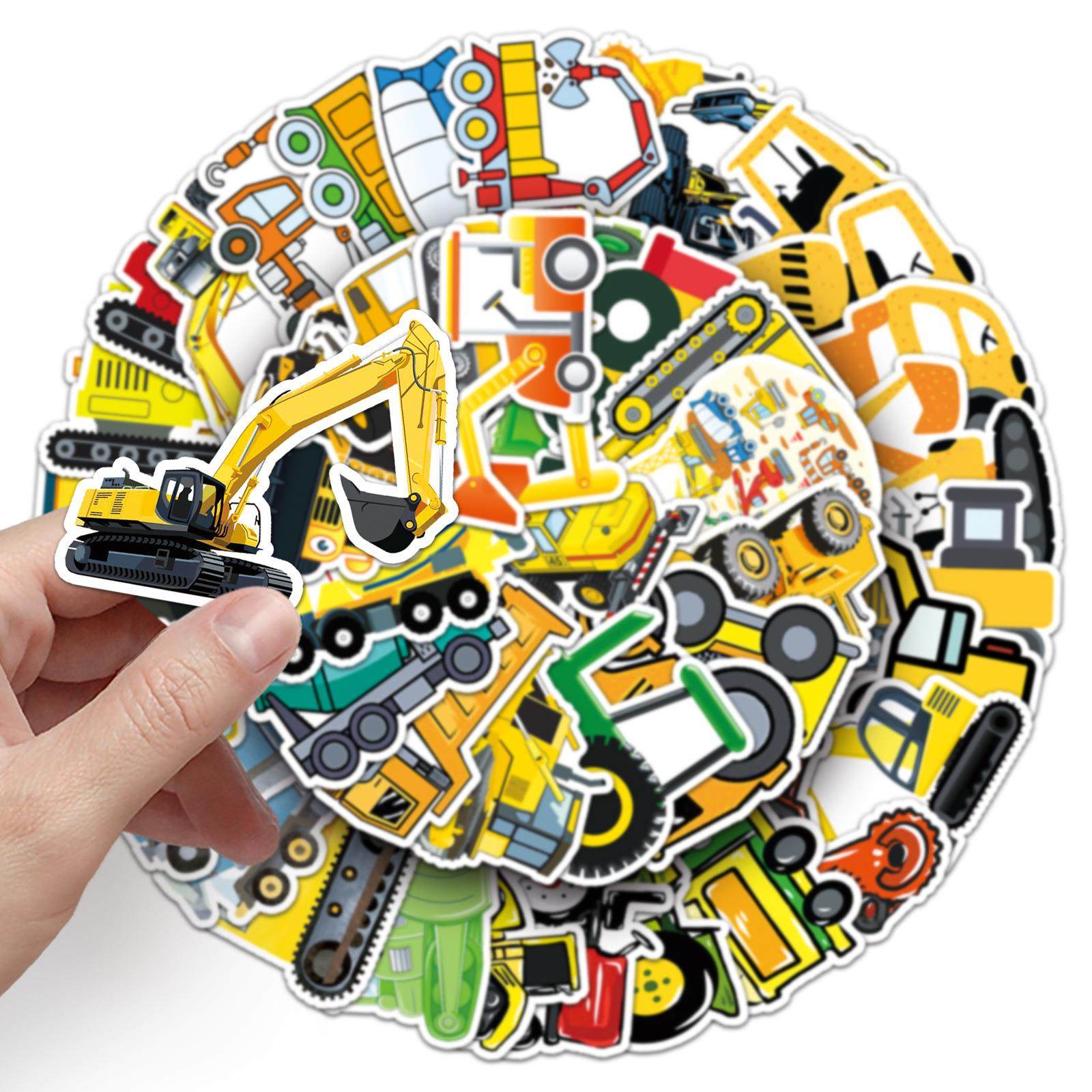 50张工程车涂鸦个性 跨境卡通创意咕卡手账DIY滑板行李箱贴纸防水