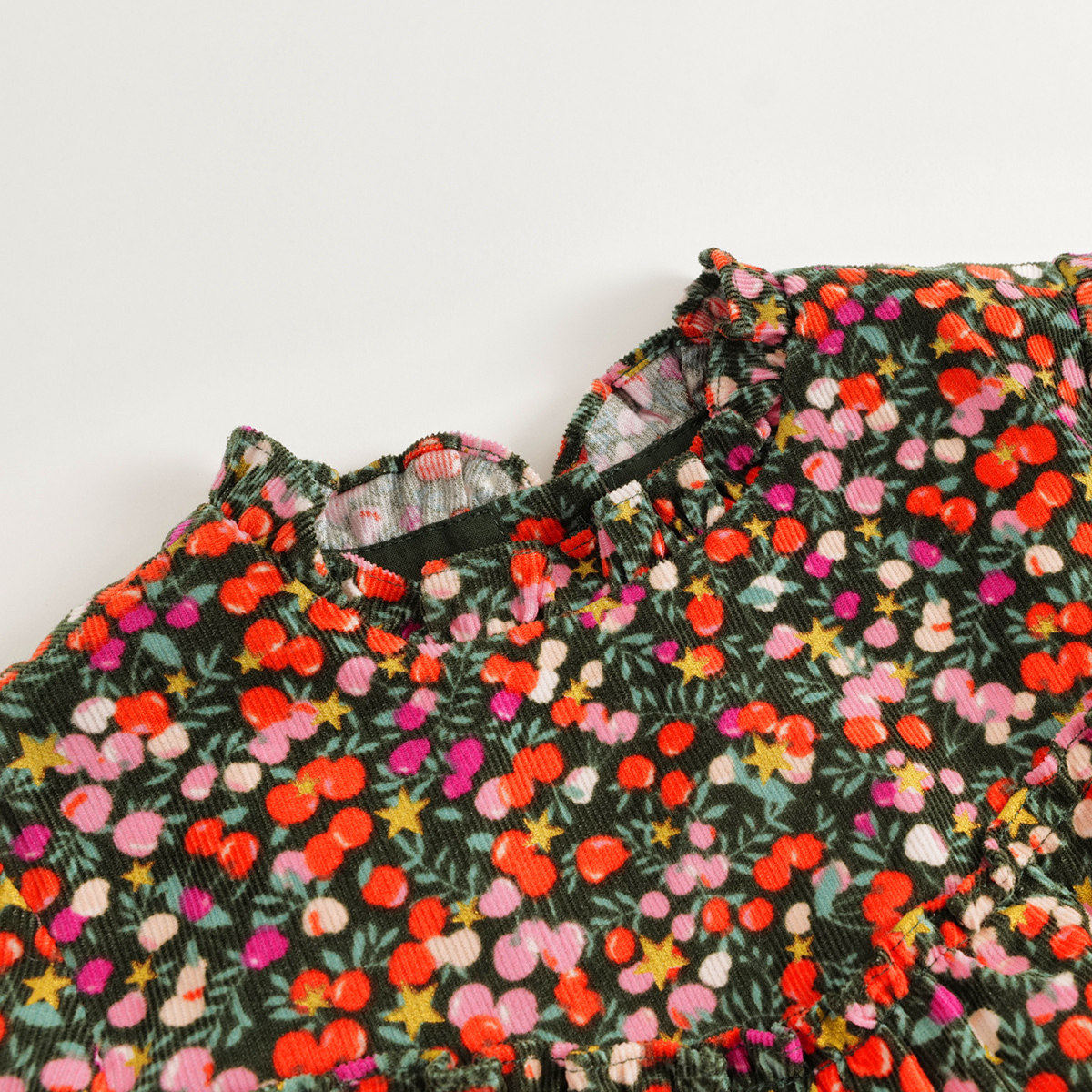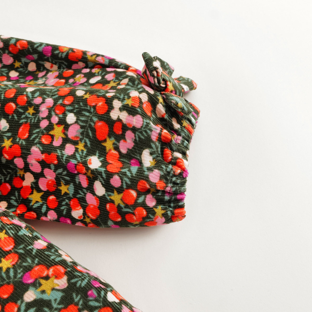 【马克珍妮 法式】女童灯芯绒碎花A版连衣裙儿童裙子春秋款231559