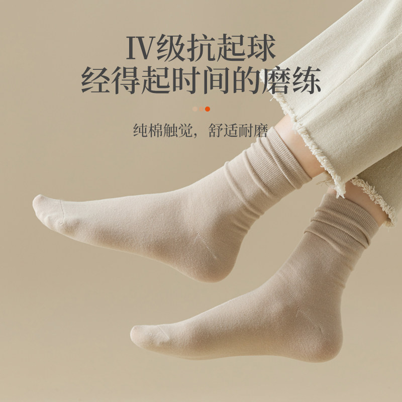 棉伙棉伴纯棉中筒袜抗起球男女纯色透气舒适耐穿日常百搭