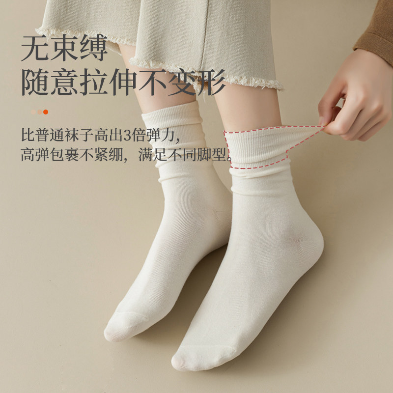 袜子女春秋款堆堆袜新疆棉中筒袜秋冬季白色无骨纯色夏天月子长袜