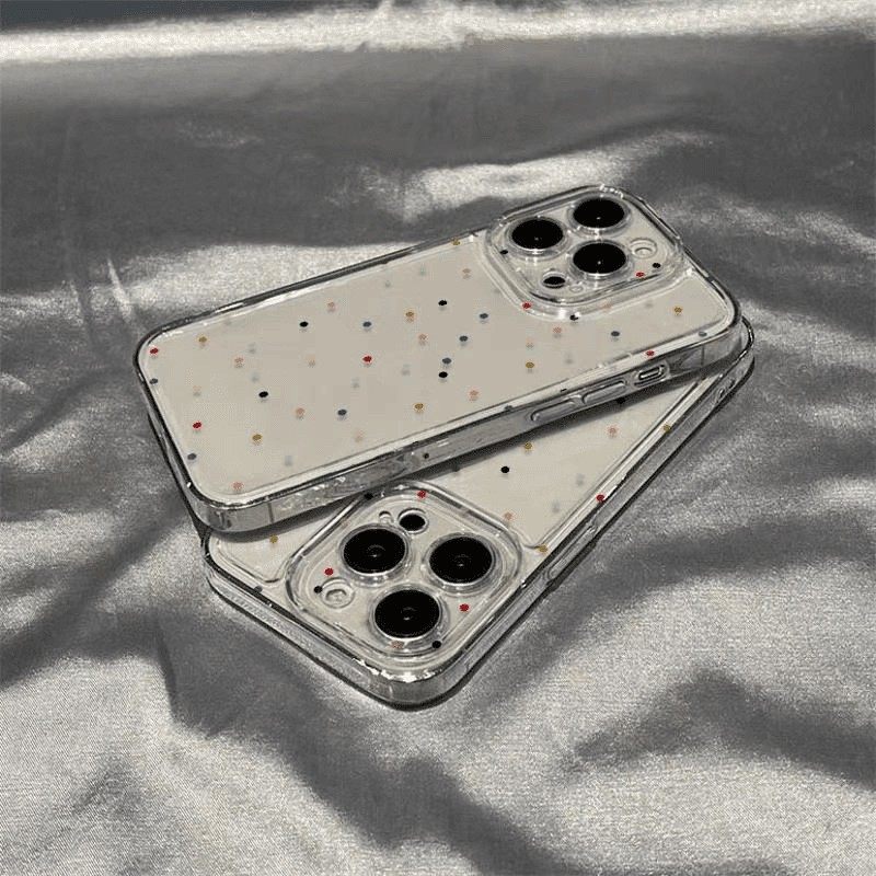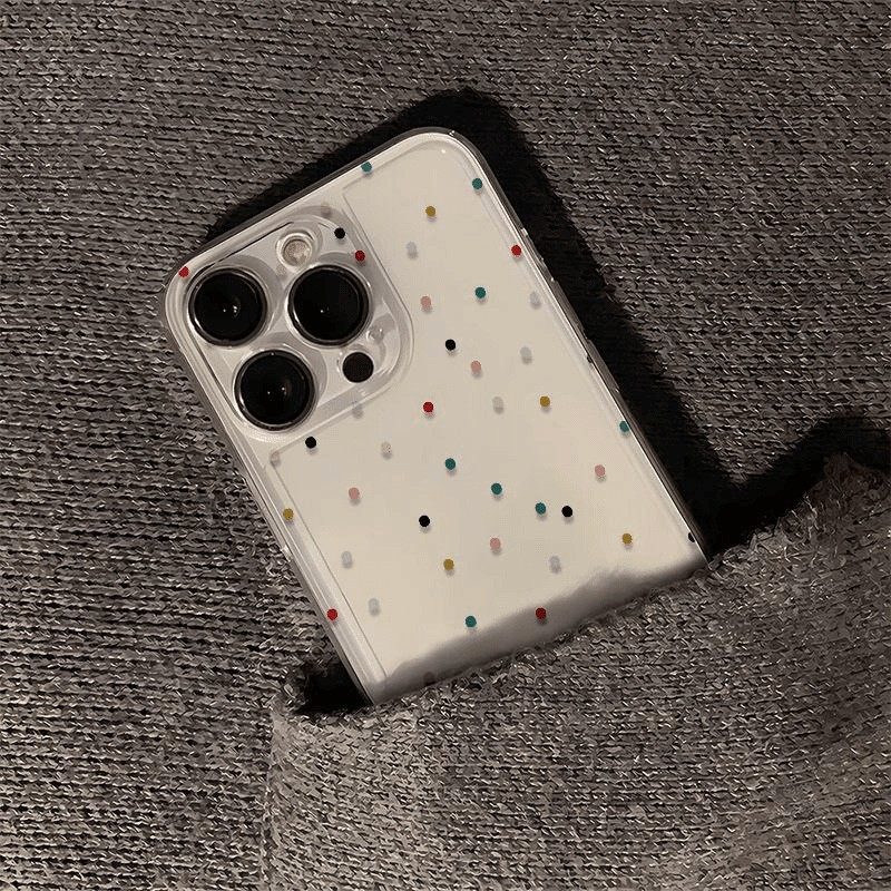彩色波点透明壳适用苹果17pm手机壳iPhone16p高级感15日韩ins14简约13精孔12新款11镜头全包8p防摔保护套软