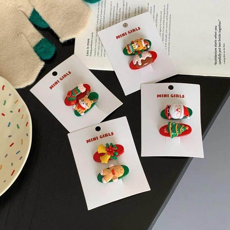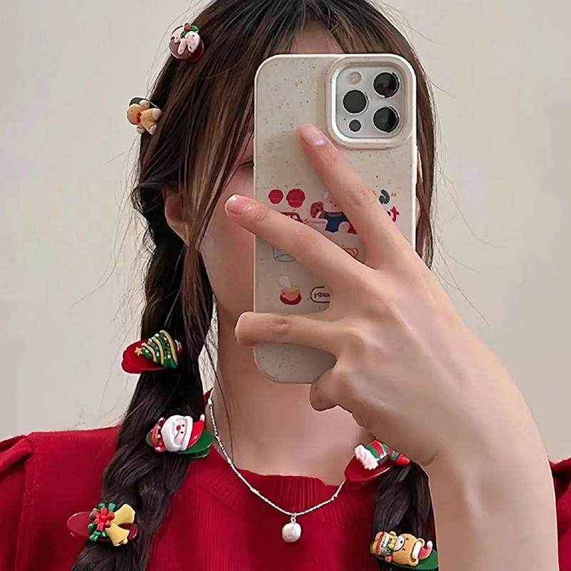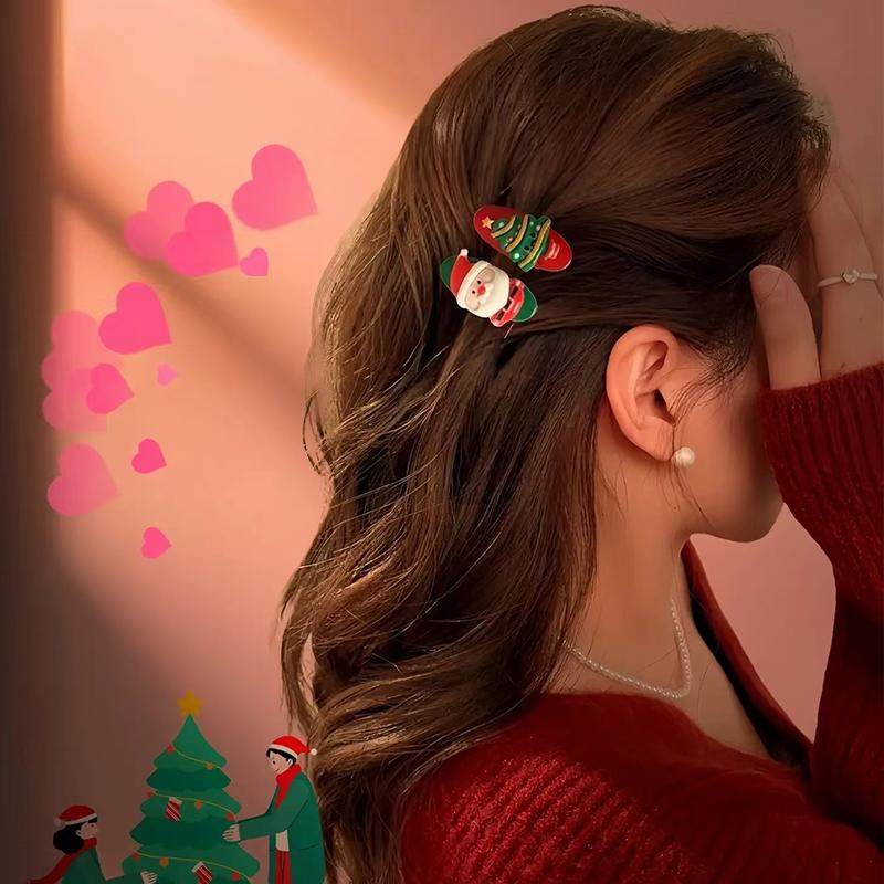 2025新款圣诞节少女发夹可爱刘海侧边发卡儿童节日氛围鸭嘴夹发饰