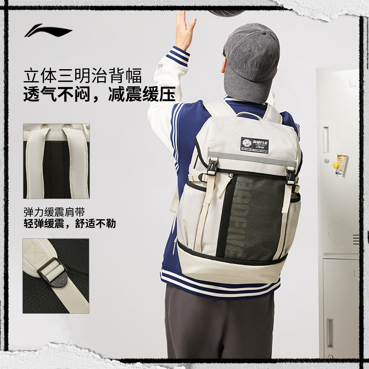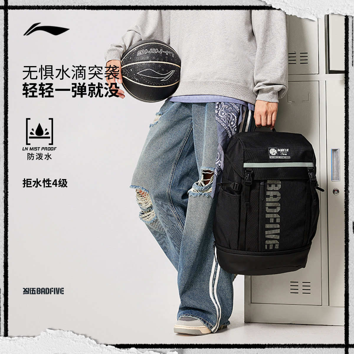 李宁反伍BADFIVE双肩包男包女包 新款背包书包学生反光运动包
