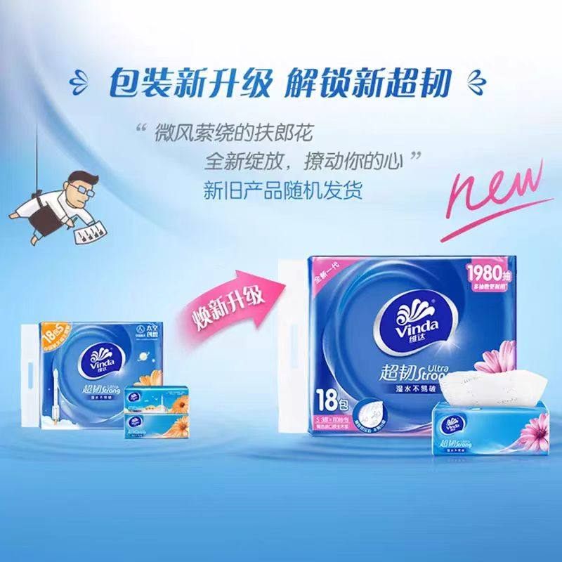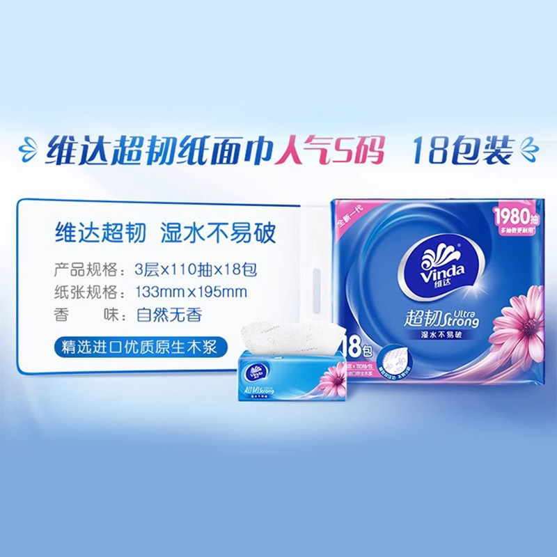 维达抽纸超韧3层110抽18包提装家用实惠装餐巾纸卫生纸面巾纸抽纸