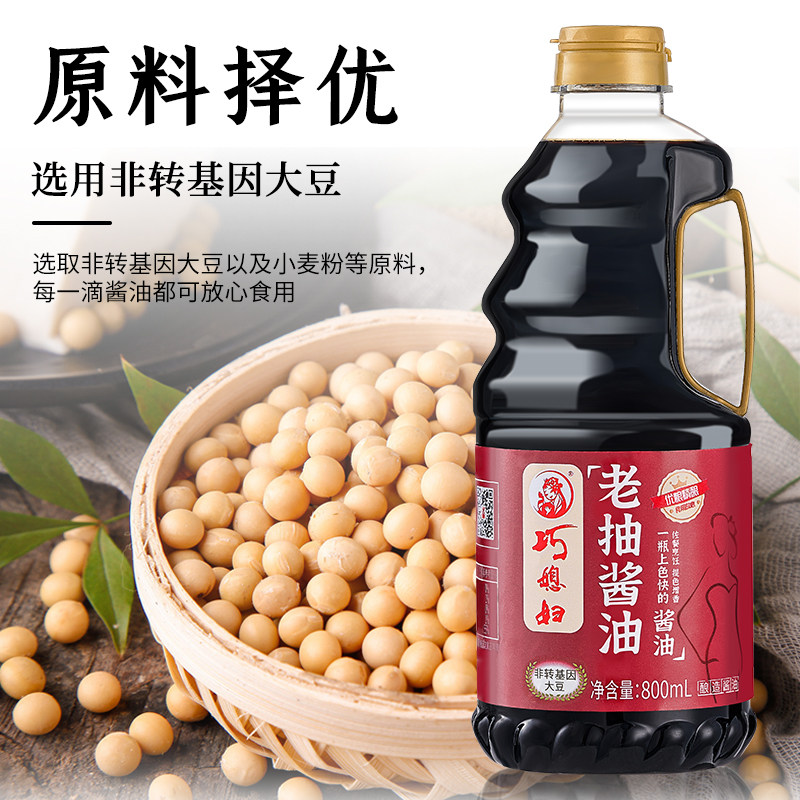 巧媳妇老抽酱油800ml生抽800ml酿造家用炒菜红烧炖肉黄豆美味鲜味