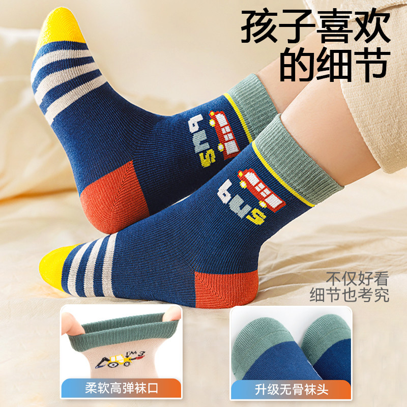 纯棉童袜春秋款夏季薄款防臭不起球男女袜子全棉中筒袜时尚儿童袜