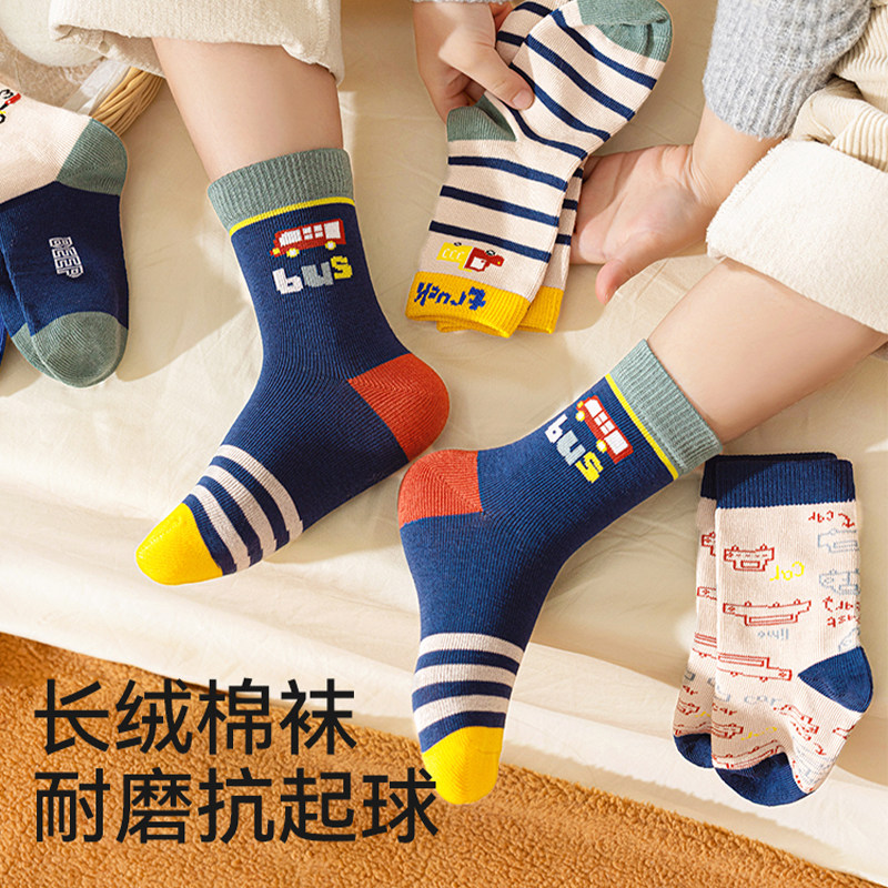 儿童袜子秋冬季加绒加厚冬天精梳棉袜男宝宝男童中筒冬天运动童袜
