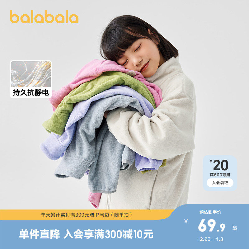 巴拉巴拉童装儿童摇粒绒外套2025年新款春秋装男童女童亲子抗静电