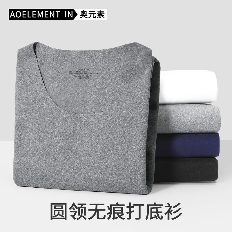 男士加绒加厚秋衣男秋冬单件保暖上衣修身长袖打底衫圆领基础内衣