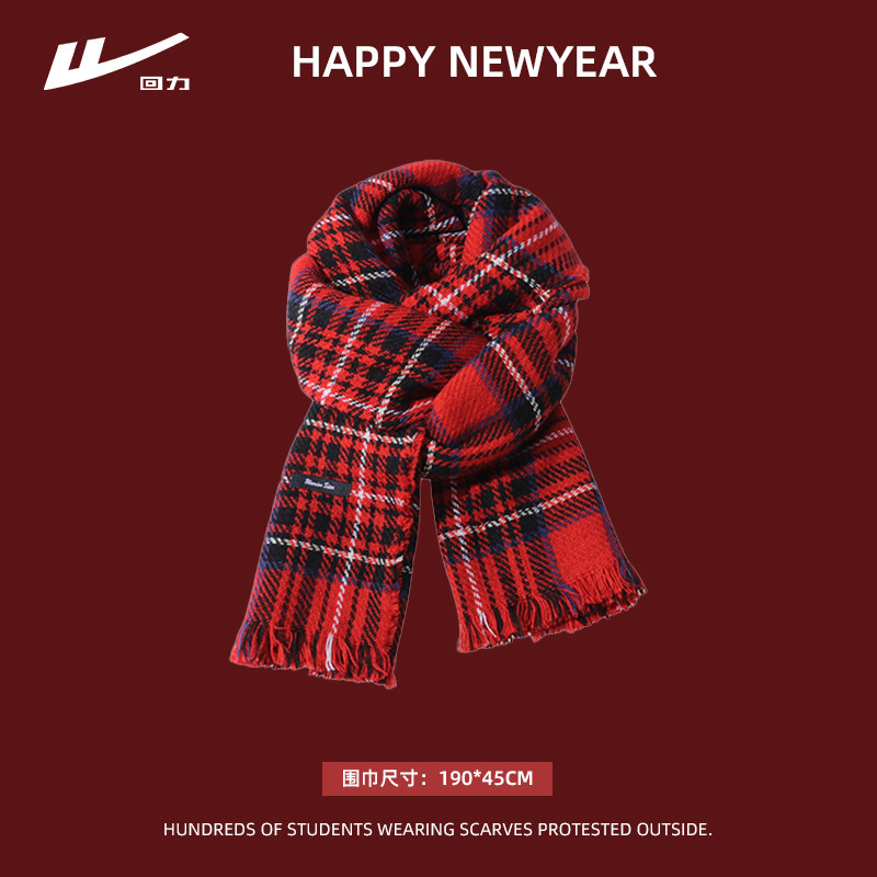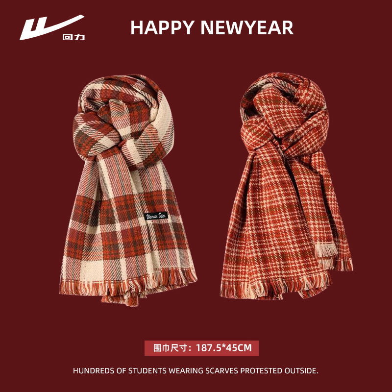 回力圣诞新年围巾女新款加大加厚韩系秋冬氛围感百搭围脖双面格纹