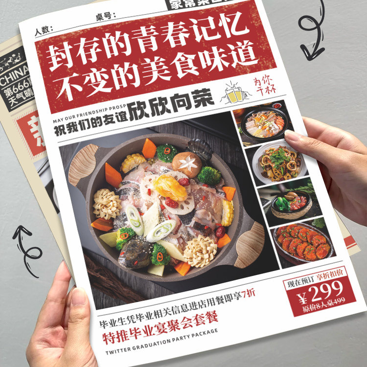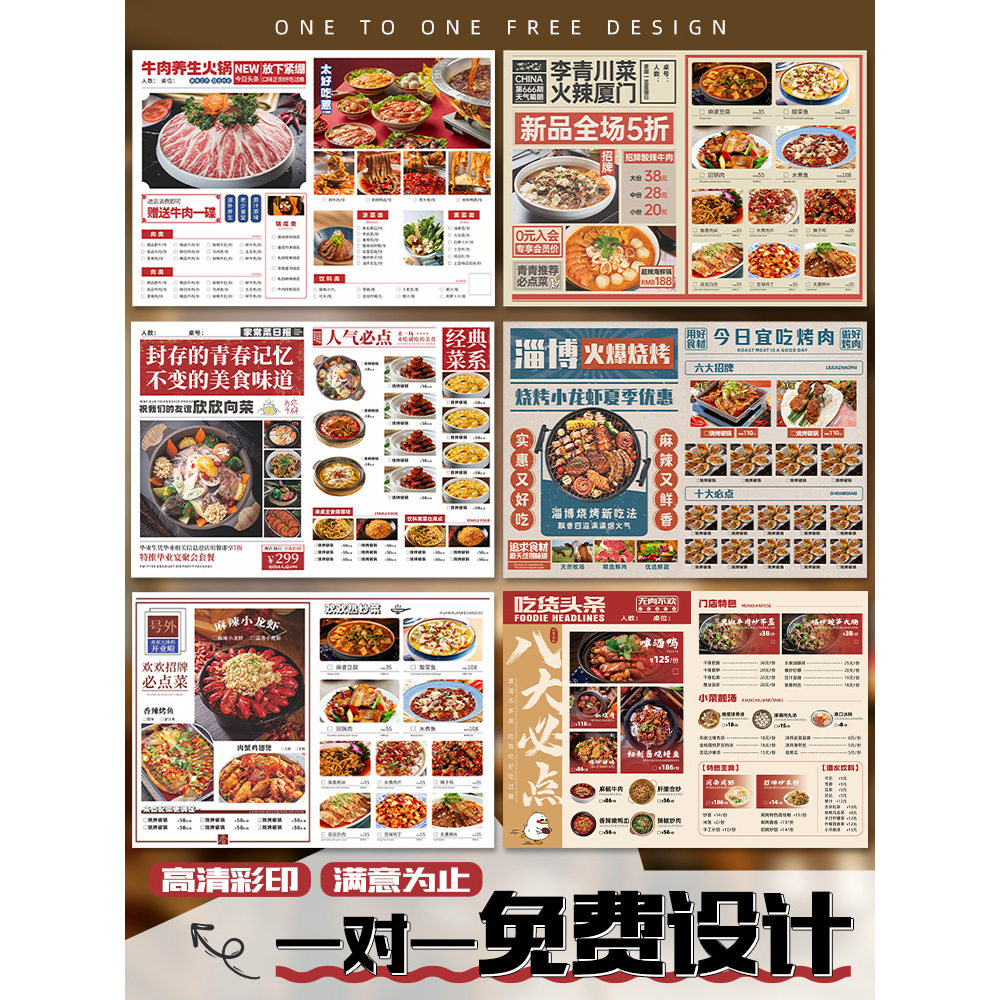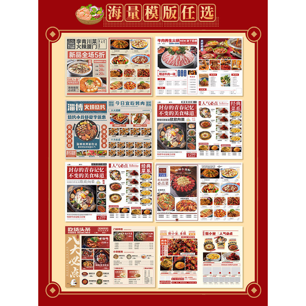 报纸菜单定制火锅美食海报设计logo餐饮彩页印刷菜谱展示牌定做