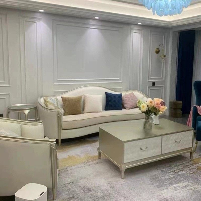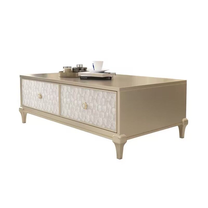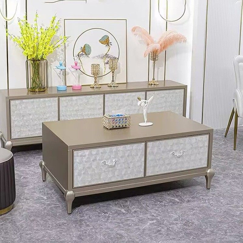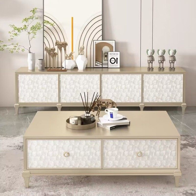 美式轻奢茶几高级感贝壳方形茶几家用客厅实木法式沙发电视柜组合