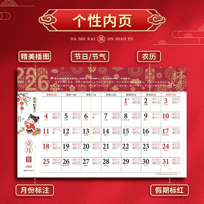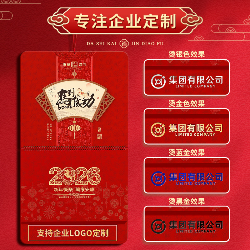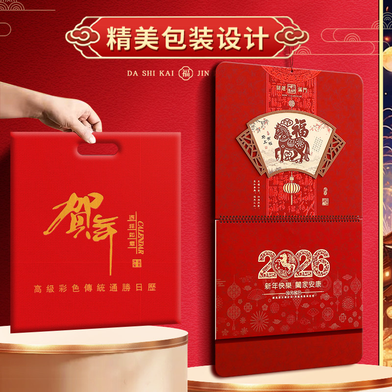 2026年挂历新款马年高档中国风家用挂墙手撕福字日历大号新中式创意福牌月历商务公司送员工企业定制可印logo