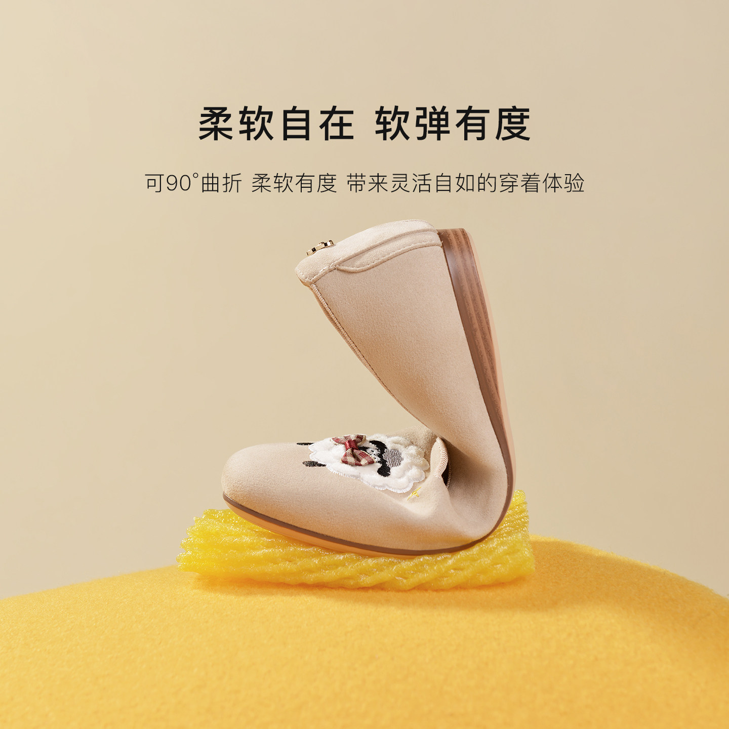 董洁同款真美诗自由之歌柔软水洗牛皮小皮鞋粗跟乐福鞋女男女同款