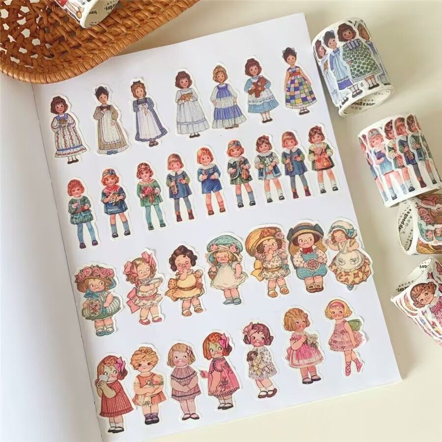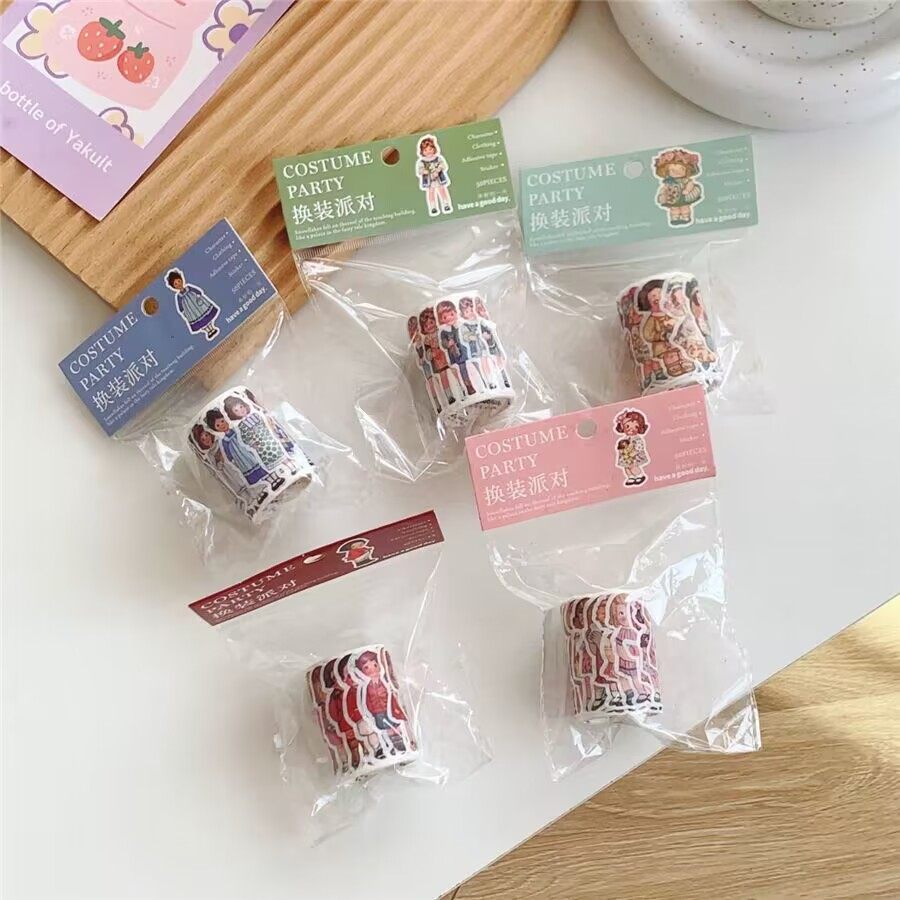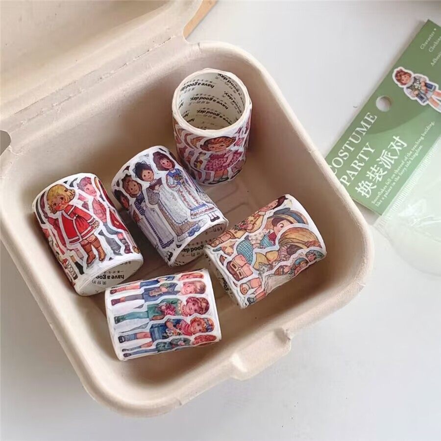 可爱换装娃异形和纸胶带 换装派对系列可爱洋娃娃手帐素材贴画8款