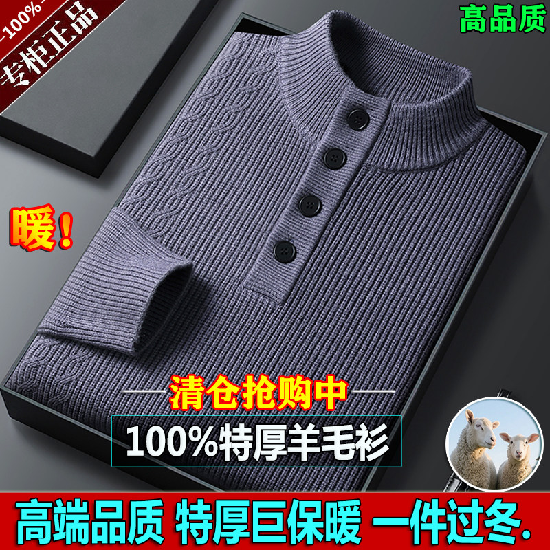 双股加厚100%纯羊毛衫半高领男毛衣秋冬季宽松套头针织打底羊绒衫