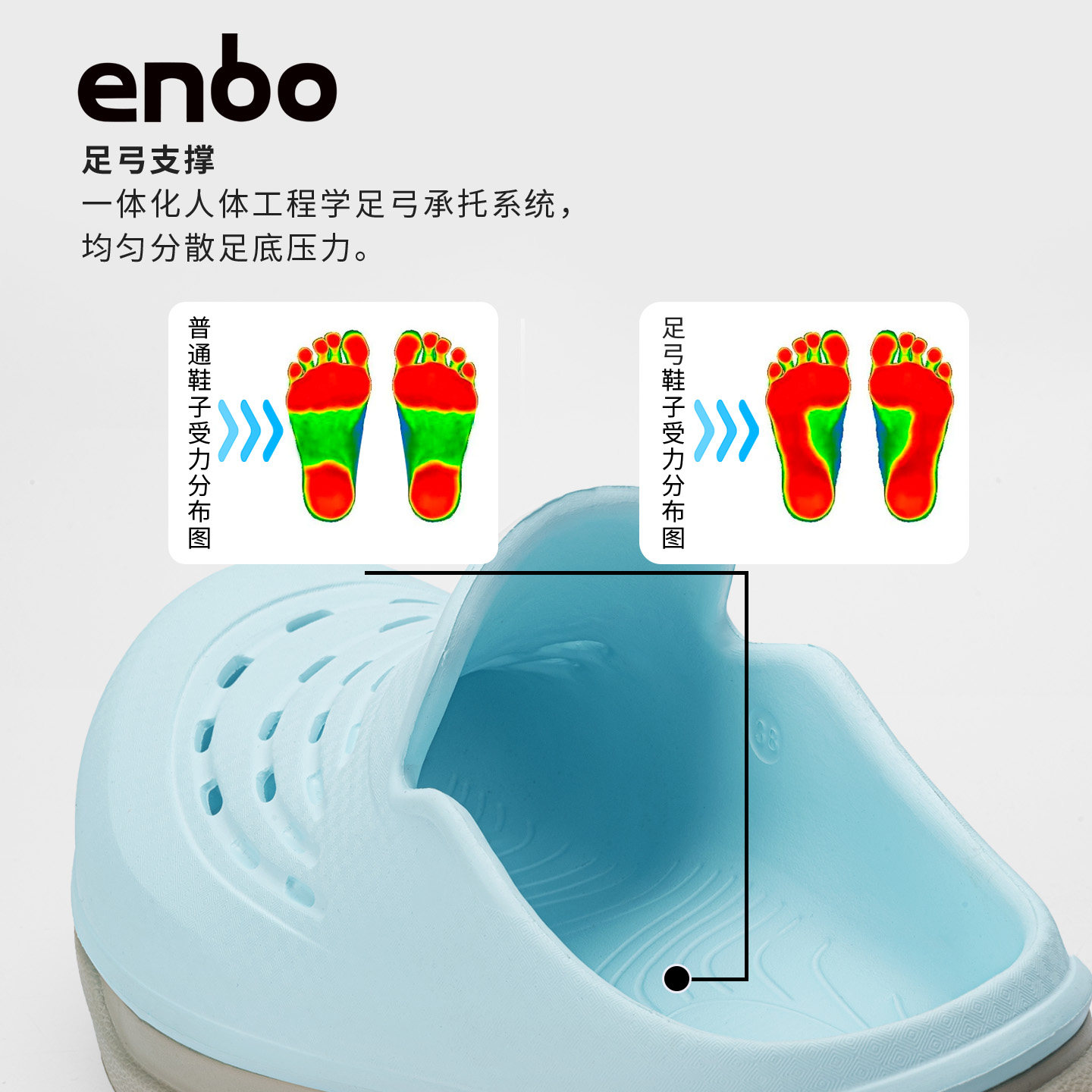 足弓支撑、内嵌式鞋床、厚底增高、运动透气