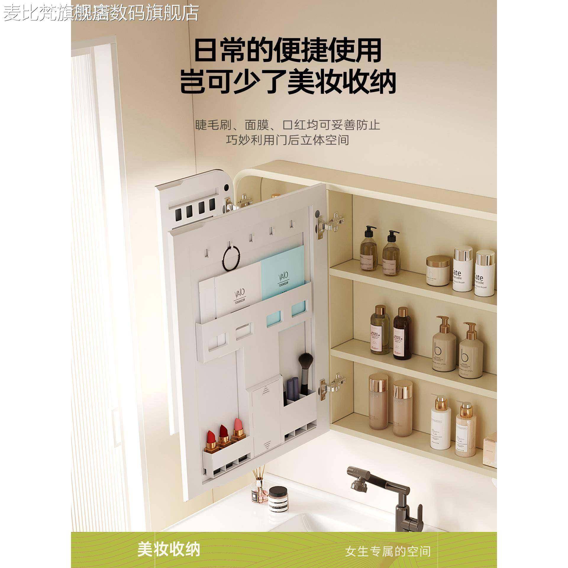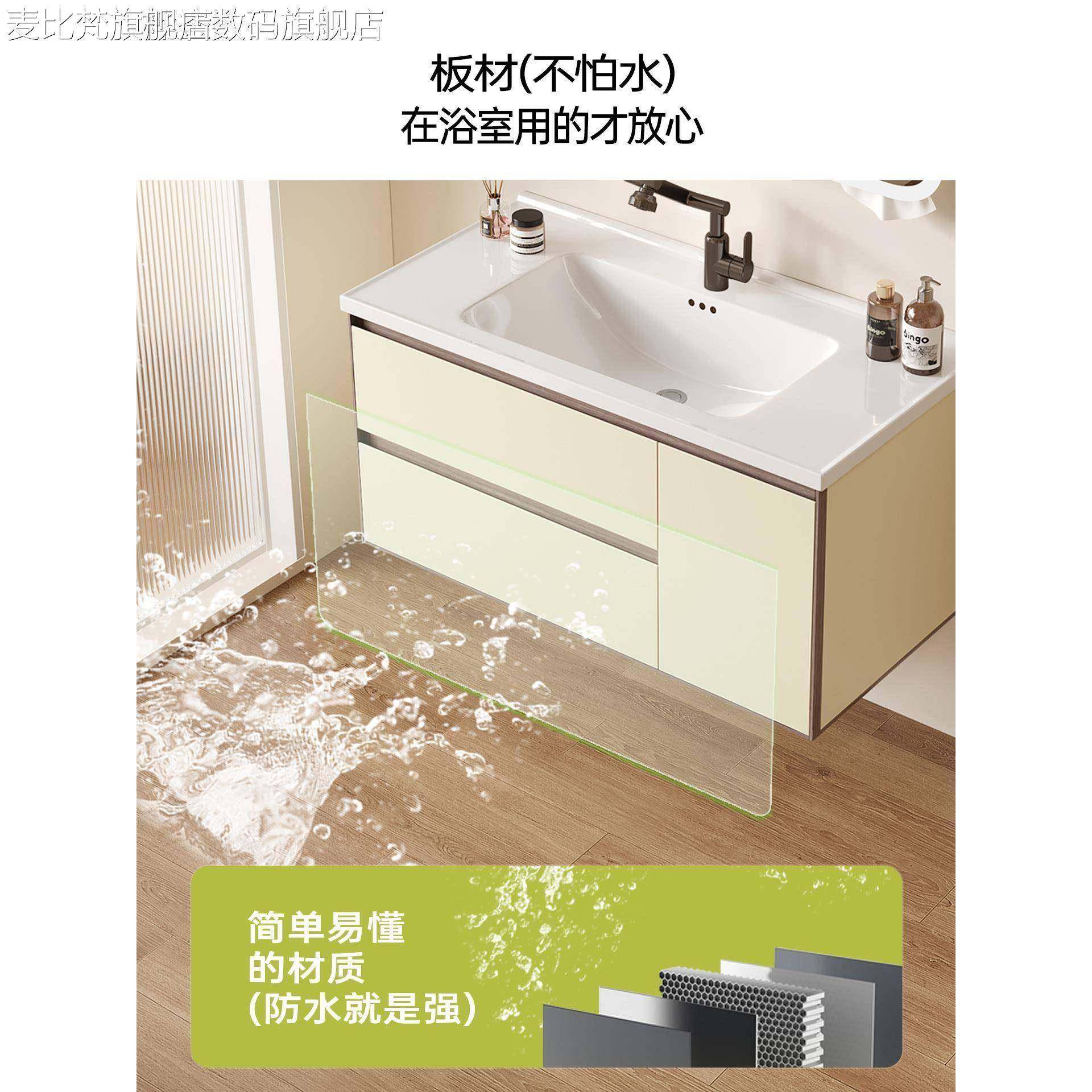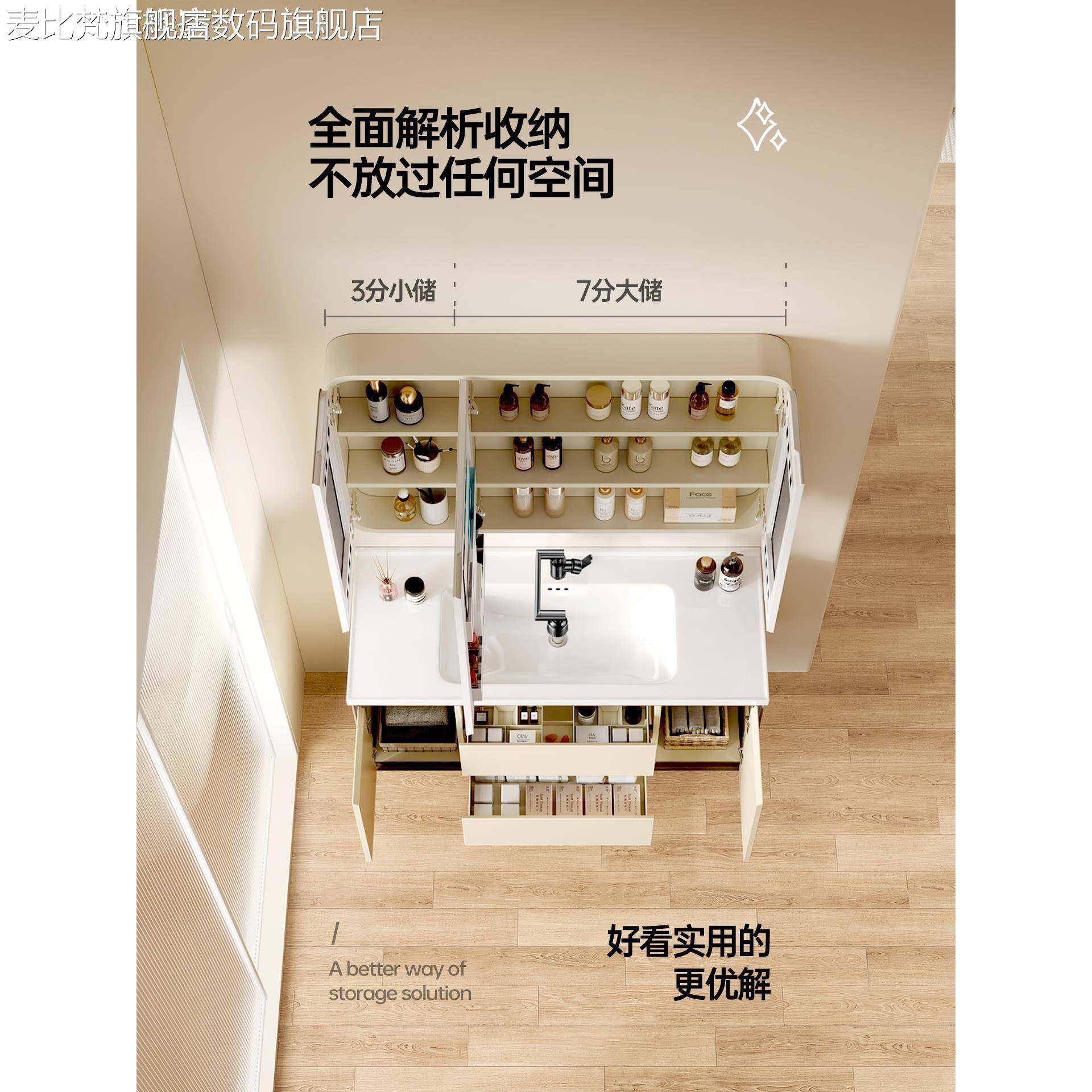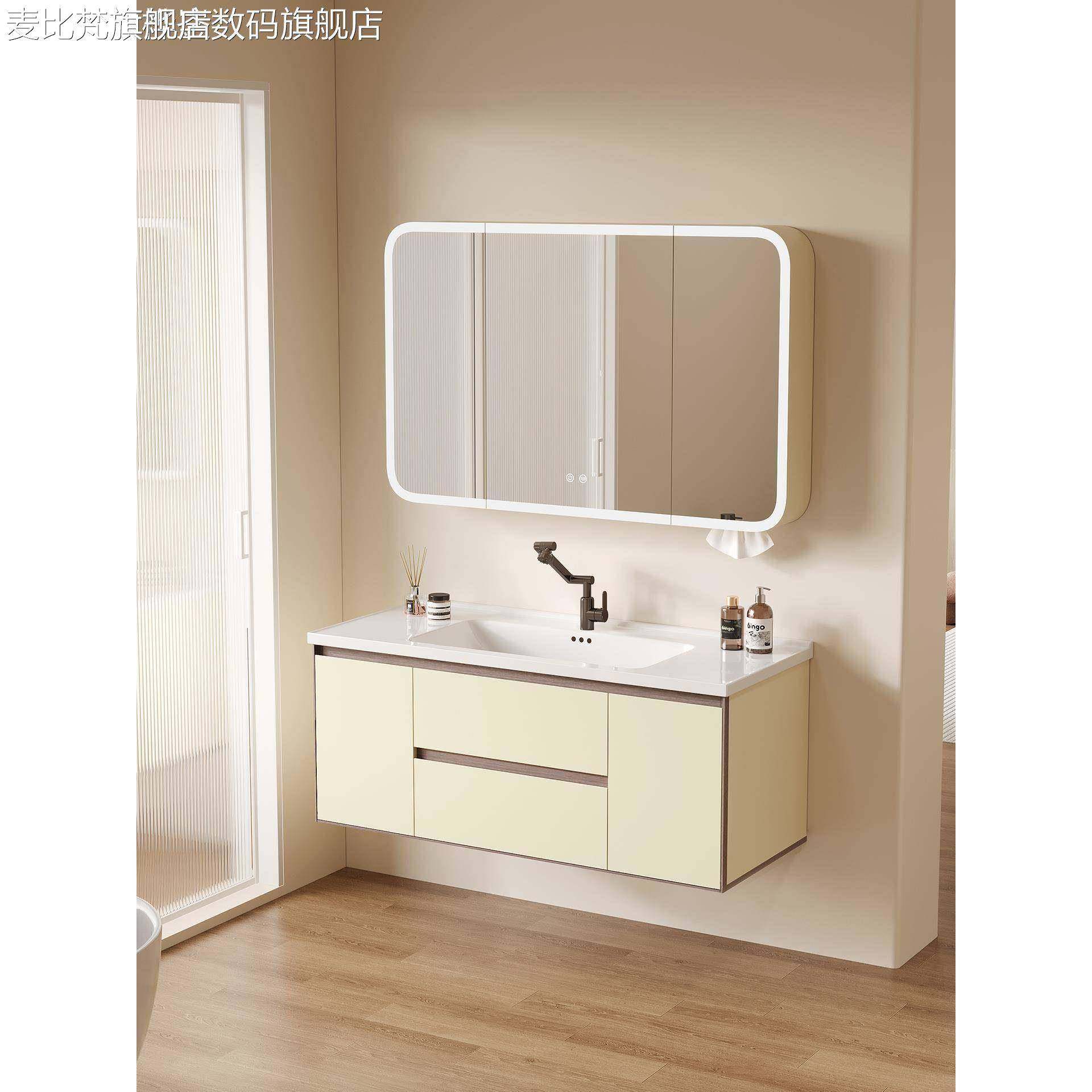 麦比梵奶油风卫浴室柜组合蜂窝铝洗手洗脸一体陶瓷盆卫生间洗漱台美妆镜摆件饰品垫垫床笠拉车