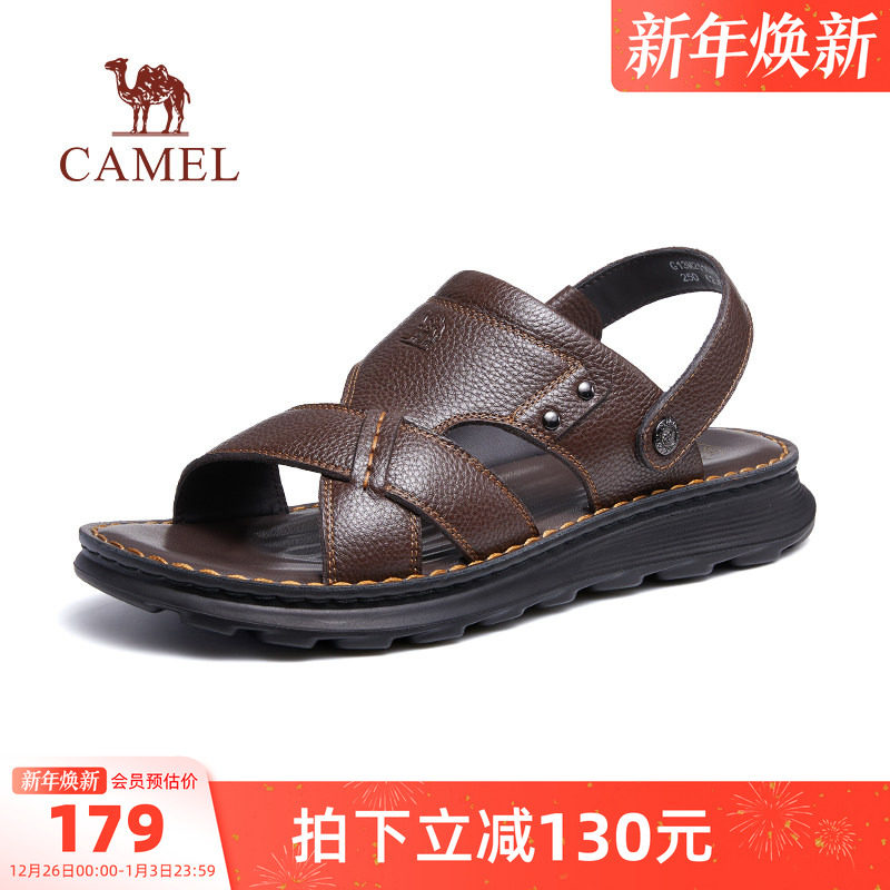 骆驼男鞋凉鞋2025夏季新款真皮商务男士凉拖鞋两穿透气爸爸沙滩鞋