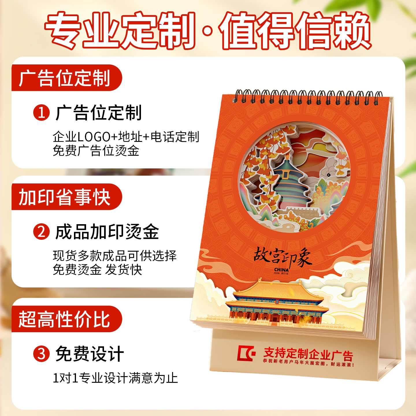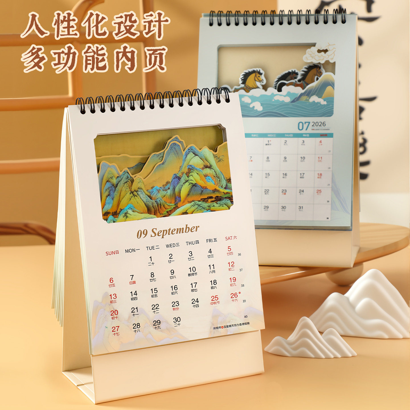 台历2026年新款日历定制logo创意简约小清新韩式办公年历个性中国风桌面摆件商务工作记事计划本订制广告月历