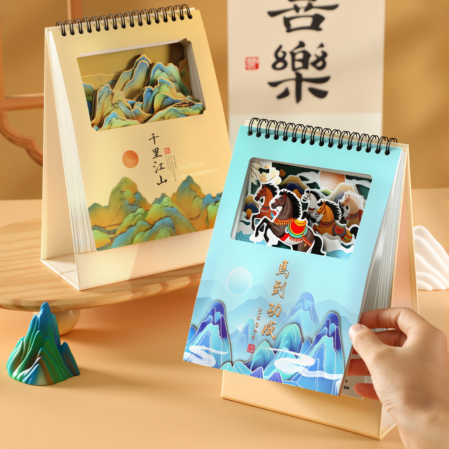 台历定制2026年新款简约创意桌面摆件马年中国风喜庆新年日历本纸质计划打卡年历纸架月历商务办公记事台历