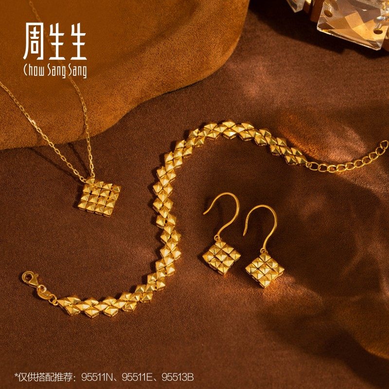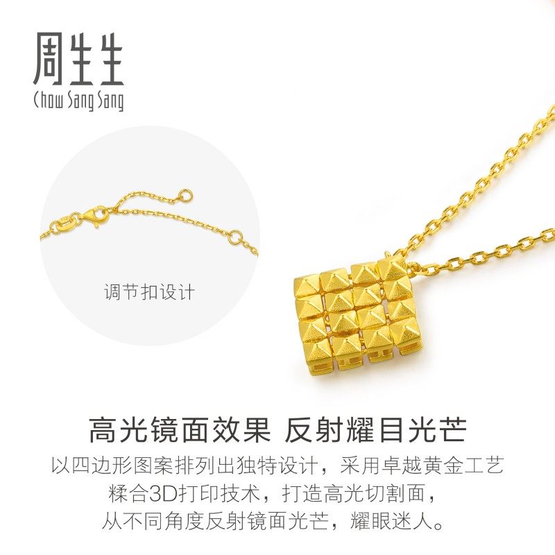 圣诞礼物周生生珠宝饰品黄金足金永系列方块金项链95511N计价