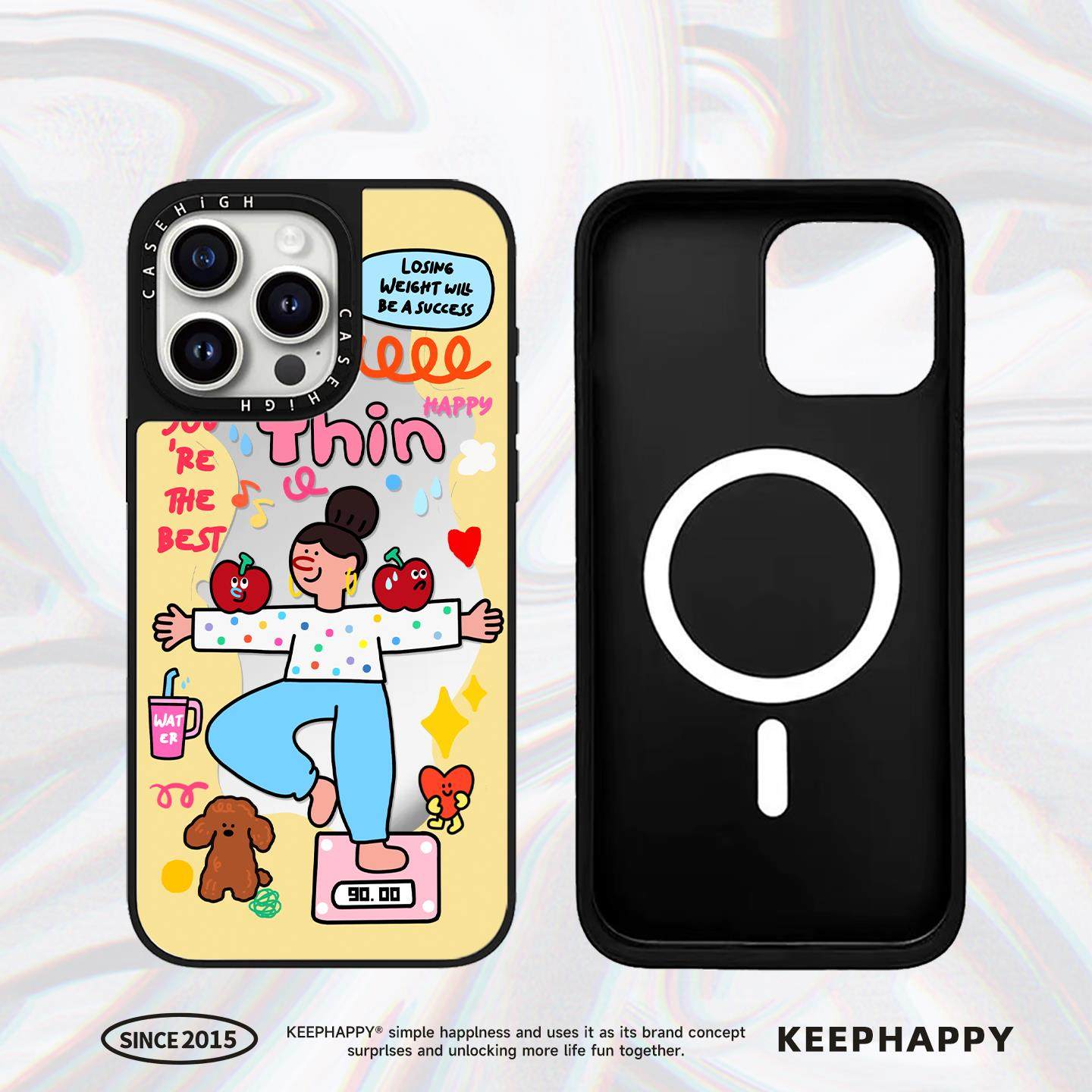 磁吸MagSafe环绕减肥日记瑜伽女孩适用iphone16pro手机壳17promax苹果15plus镜面保护套14韩风插画13女12