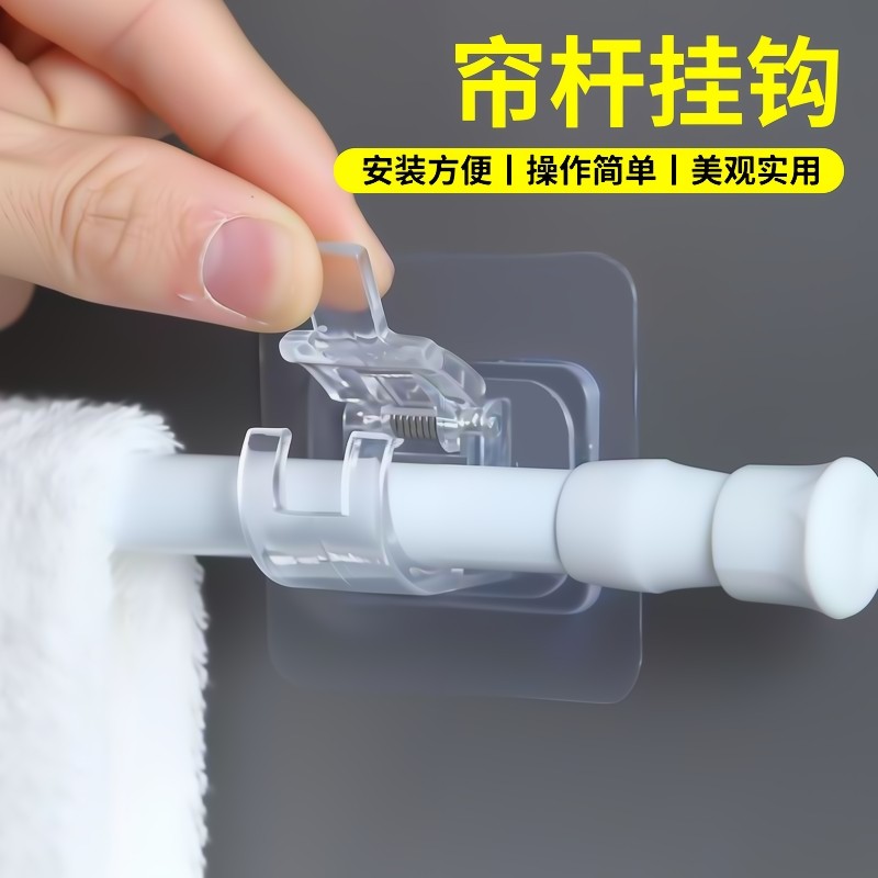 帘杆挂钩窗帘杆夹固定器免打孔支架夹子横杆门帘伸缩杆粘钩承重