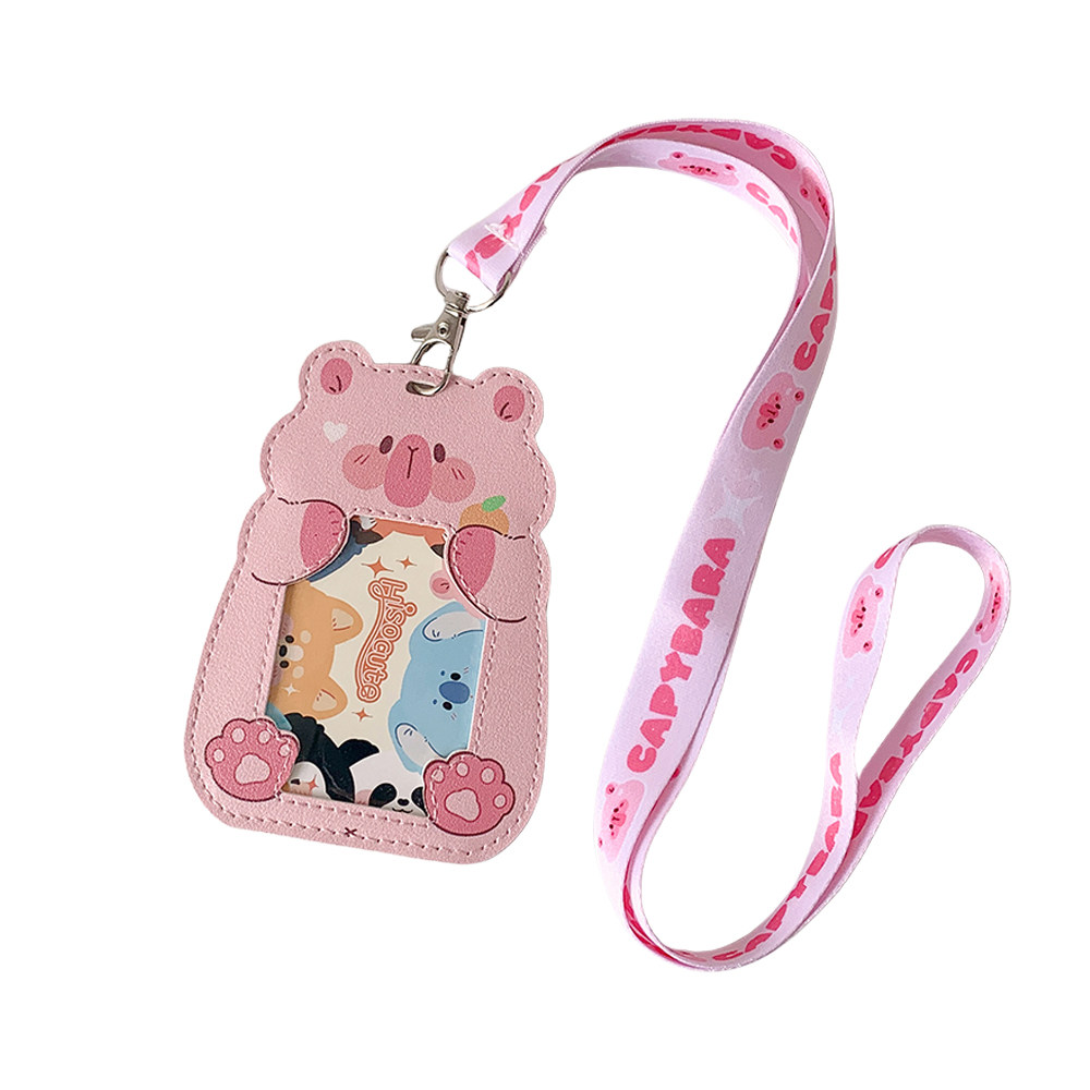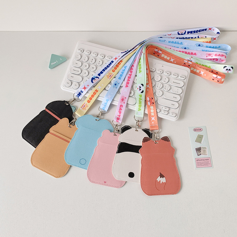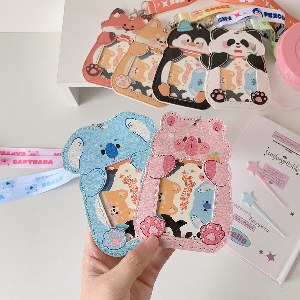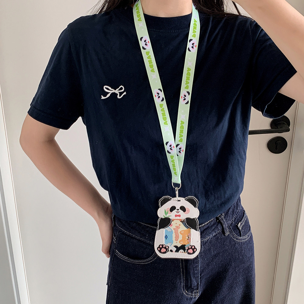 Hisocute学生可爱熊猫造型挂脖卡套校园卡地铁卡包镂空三寸卡套女