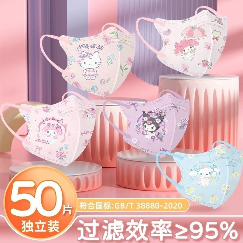 儿童KN95口罩4D立体学生卡通可爱小学生3到12岁四层防护独立包装