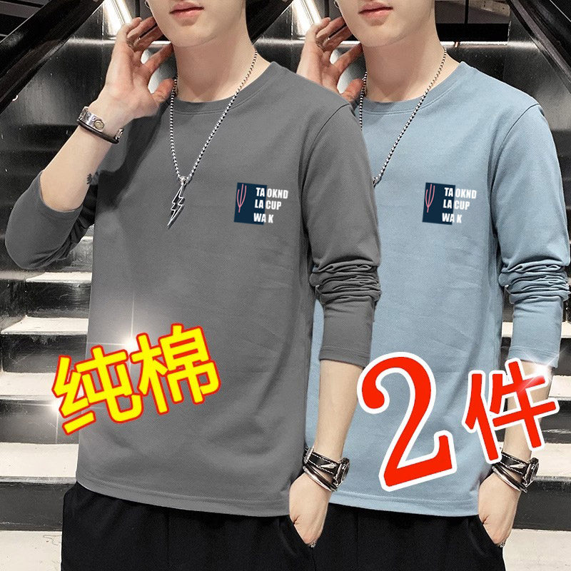 纯棉长袖男t恤2025新款秋季男士上衣简约休闲内搭秋装春秋打底衫
