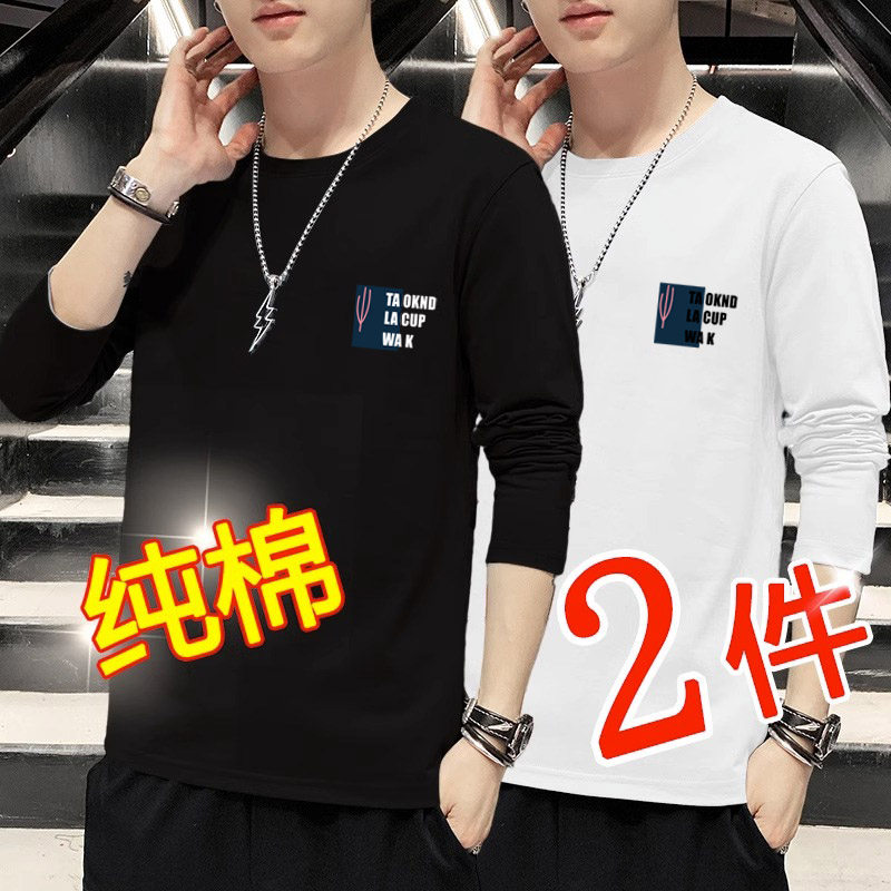 INS纯棉25韩国ins复古基础款纯色秋季打底衫内搭男女长袖T恤bf风