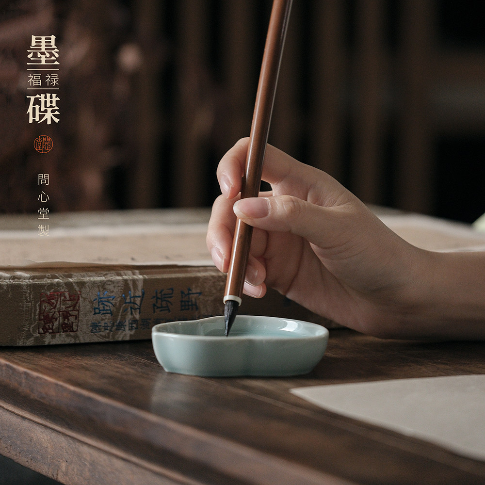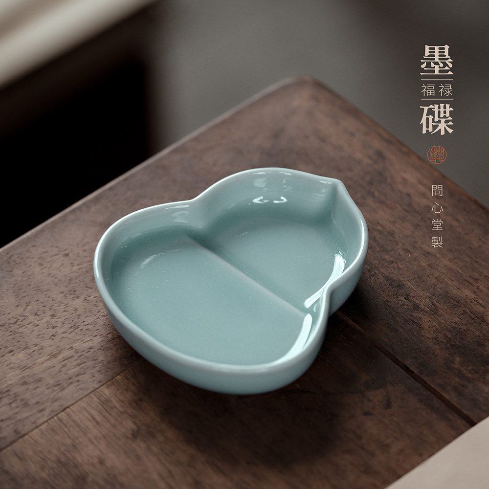 问心堂陶瓷福禄墨碟墨盒墨汁收纳国画颜料笔搁笔掭墨池毛笔书法国画专用文房四宝毛笔墨盘陶瓷墨盒