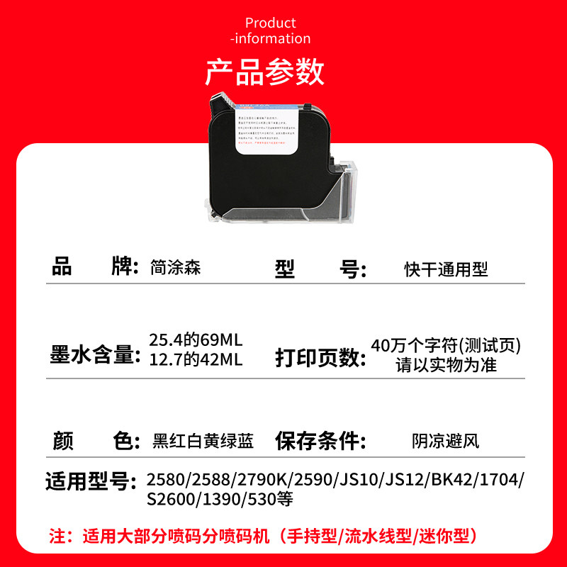 适用喷码机墨盒手持机 通用2588速干墨盒 打码机生产日期快干墨水