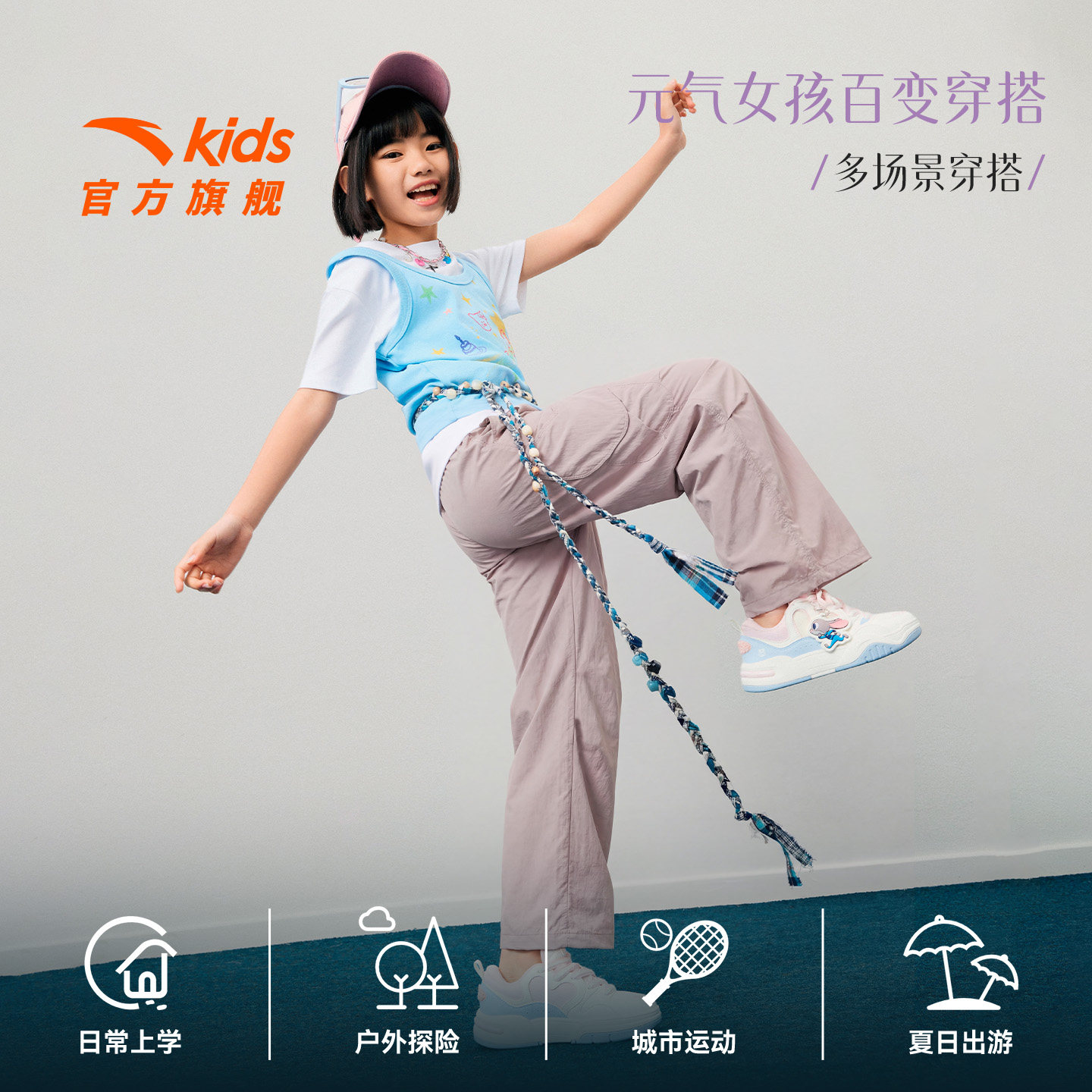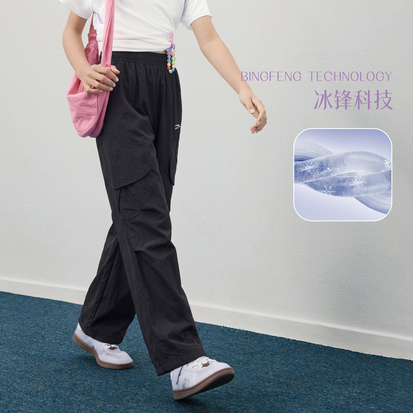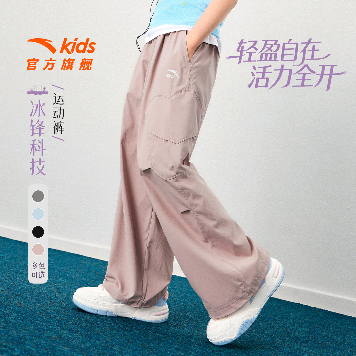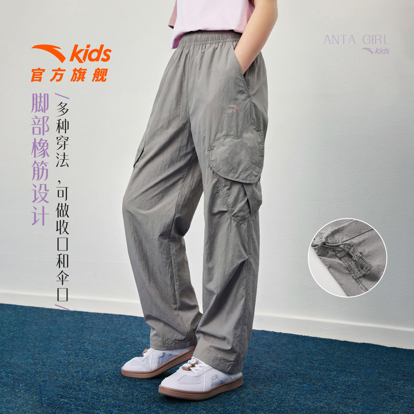 冰丝安踏儿童装女童裤子防蚊长裤夏季薄款2026新款夏装阔腿工装裤