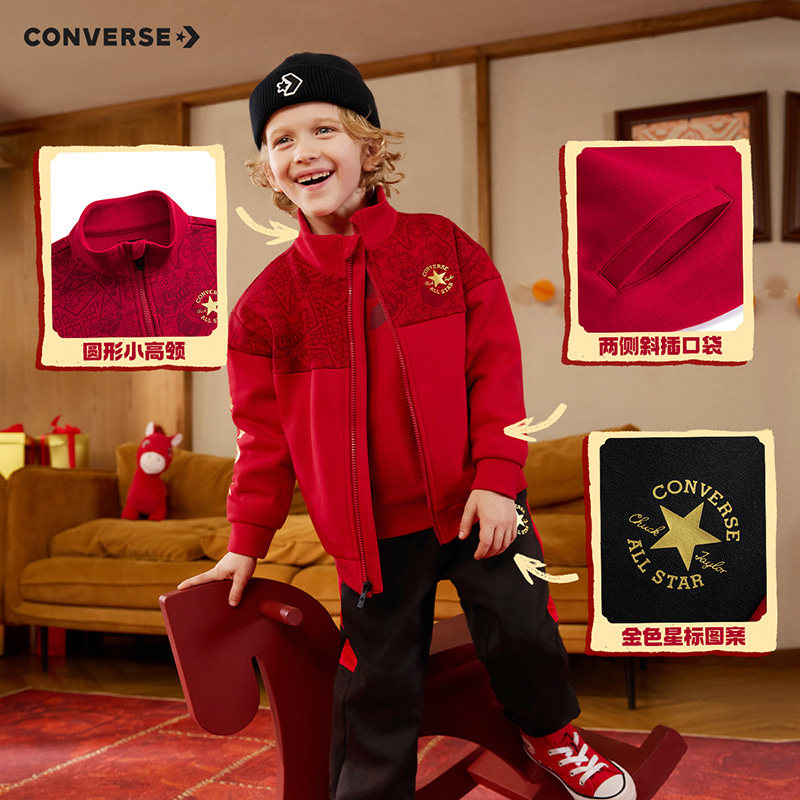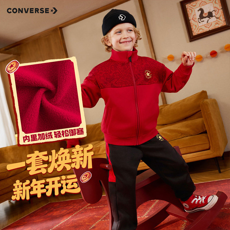 【CNY新年系列】匡威童装套装2026春季新款红外套长裤两件套加绒
