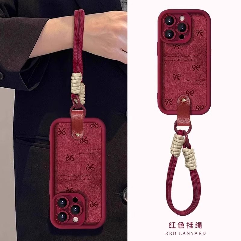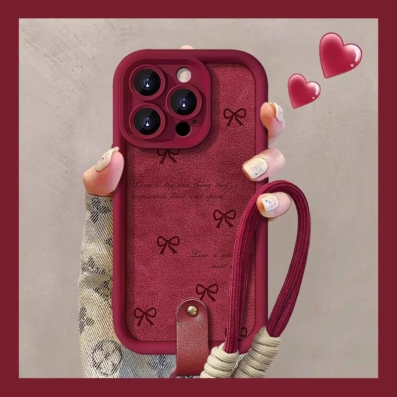 满屏蝴蝶结适用小米17pro手机壳保护套Ultra酒红色小羊皮14/15挂绳13轻奢红米note14全包note13防摔k70女新年