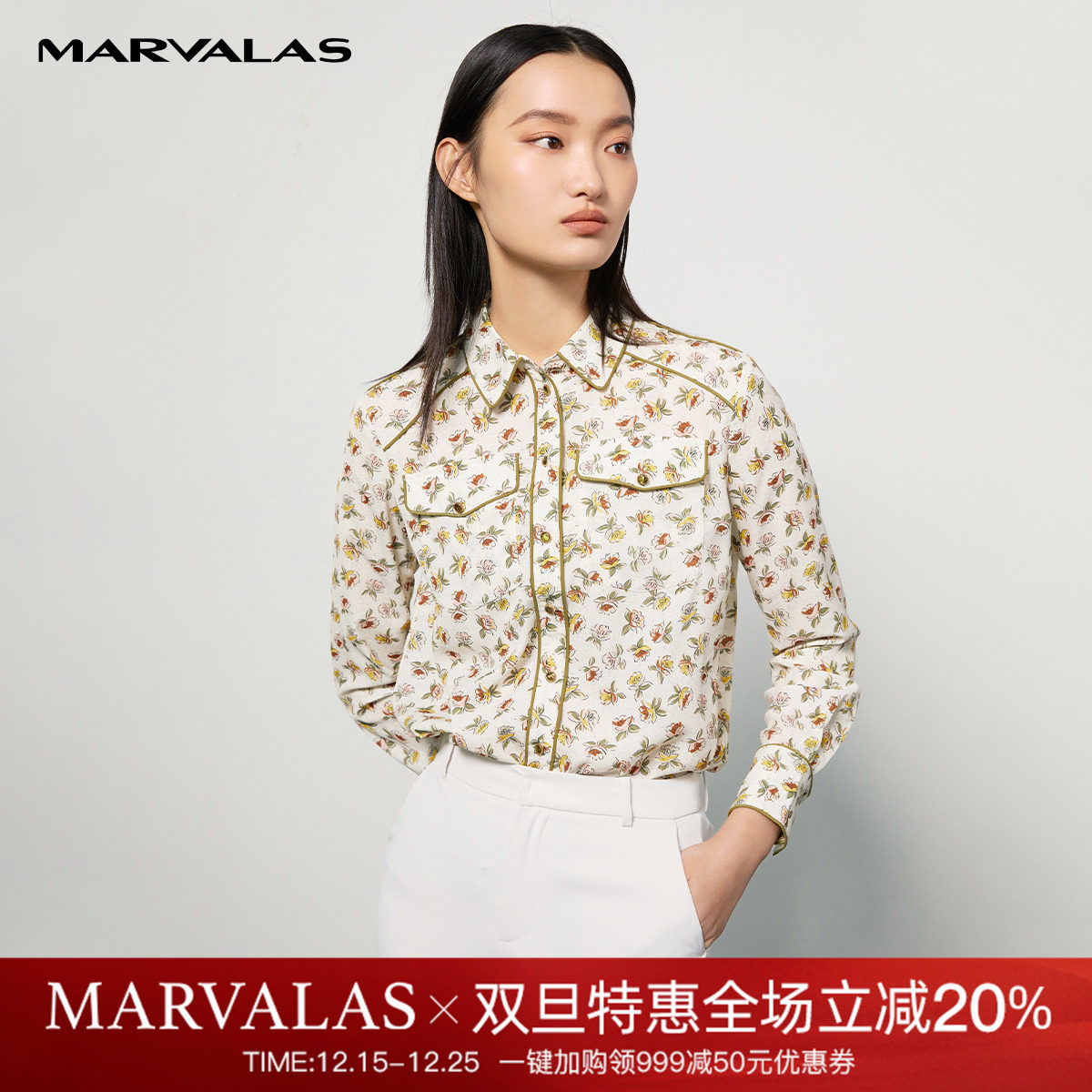 曼德诗碎花衬衫女款2025秋装新款设计感时尚雪纺chic韩系穿搭上衣
