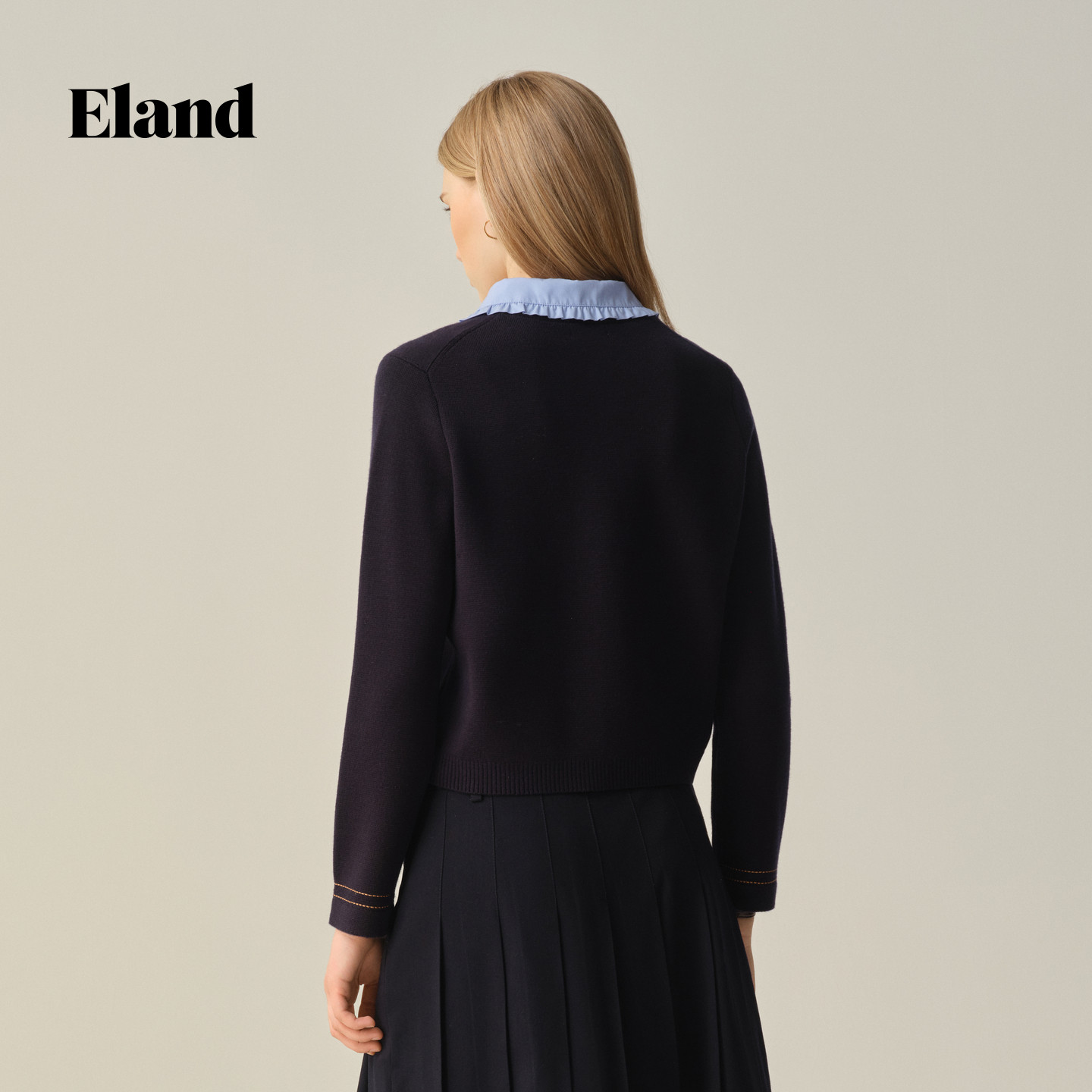 Eland衣恋毛针织衫女甜美娃娃领假两件短款开衫2025冬季新款