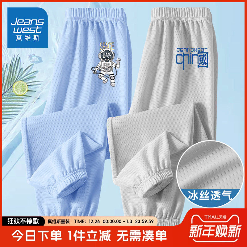 真维斯童装儿童裤子男童夏季薄款冰丝防蚊裤中大童夏款速干运动裤