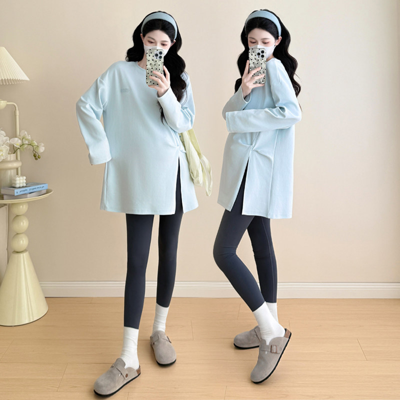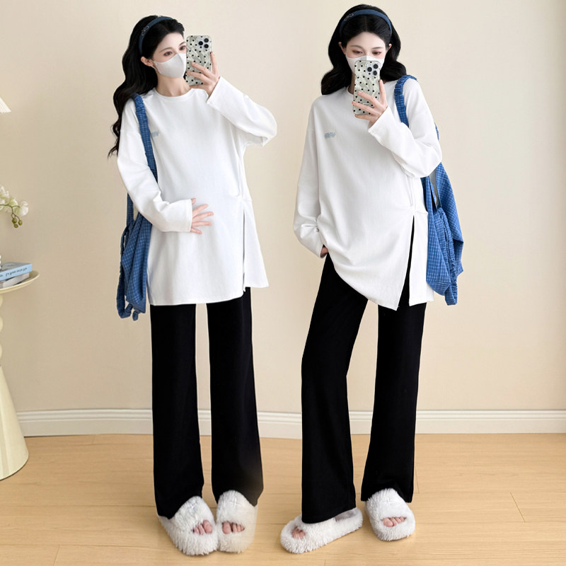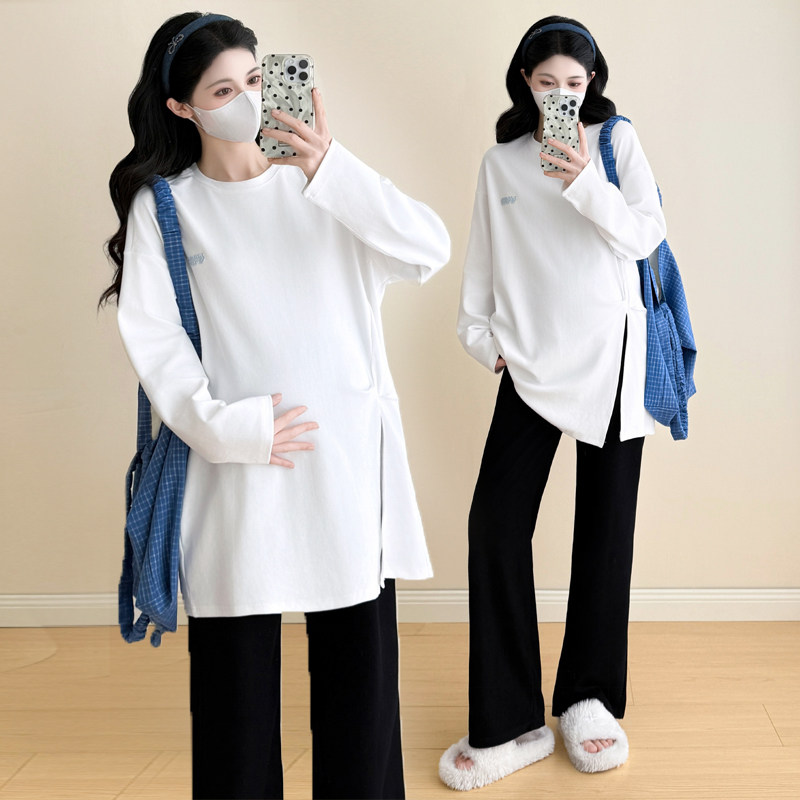 婧麒孕妇装上衣春装新款孕期遮肚中长T恤时尚洋气显瘦宽松百搭T恤