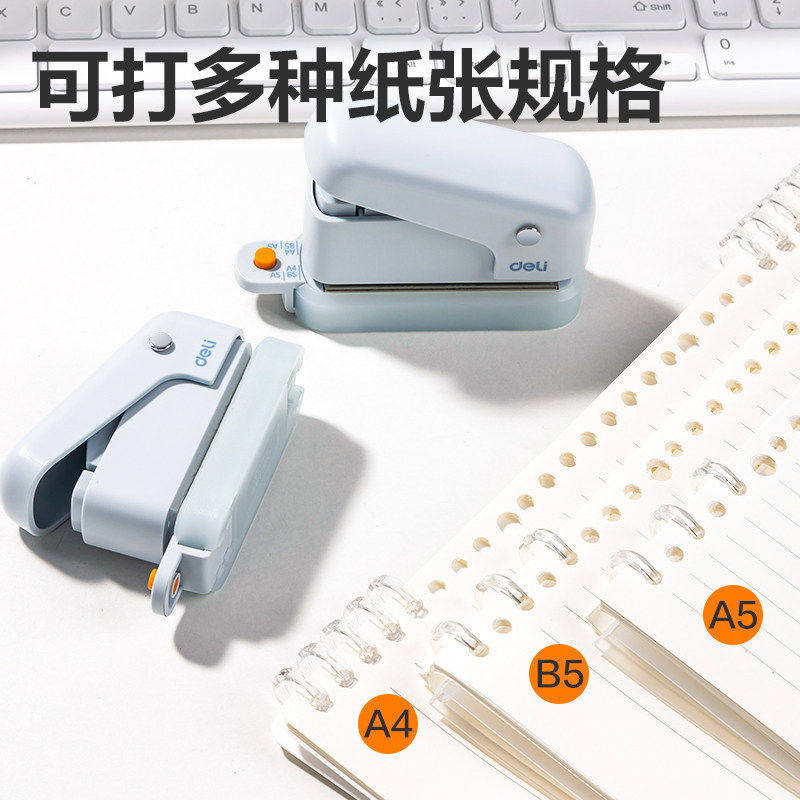 得力打孔器六孔多孔活页装订初中生高中生a4活页纸打孔机活页夹手帐本替芯内页压孔打洞器a5活页夹孔打眼KL
