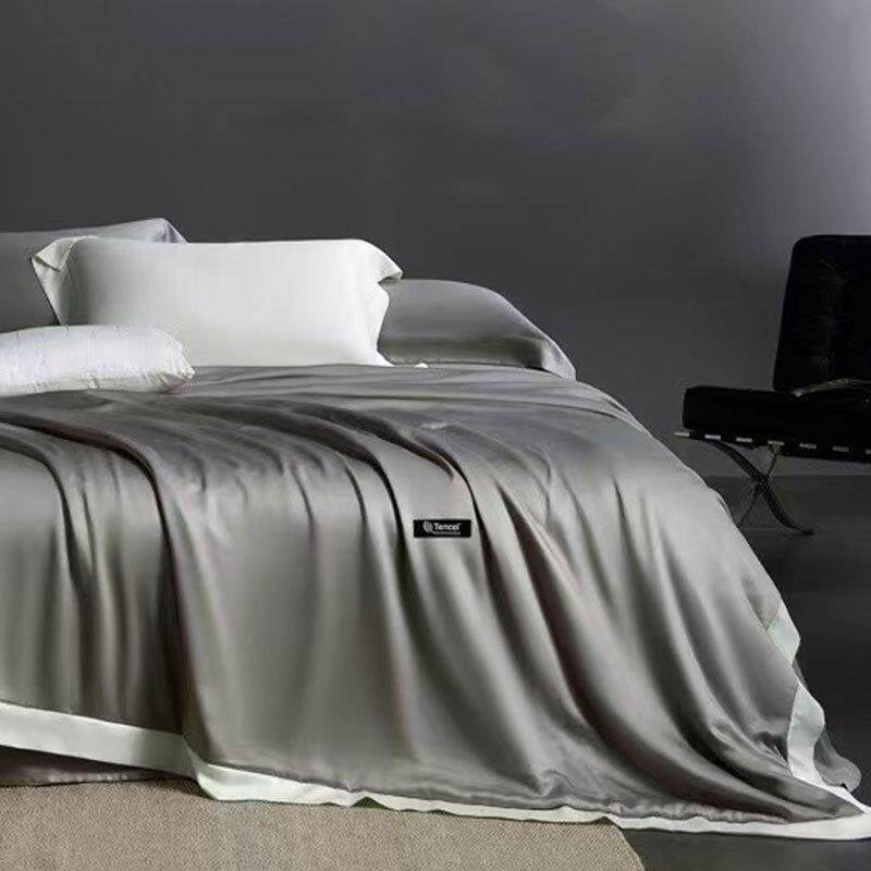 【天丝夏被套件】100支天丝素色刺绣夏被四件套丝滑莱赛尔床品