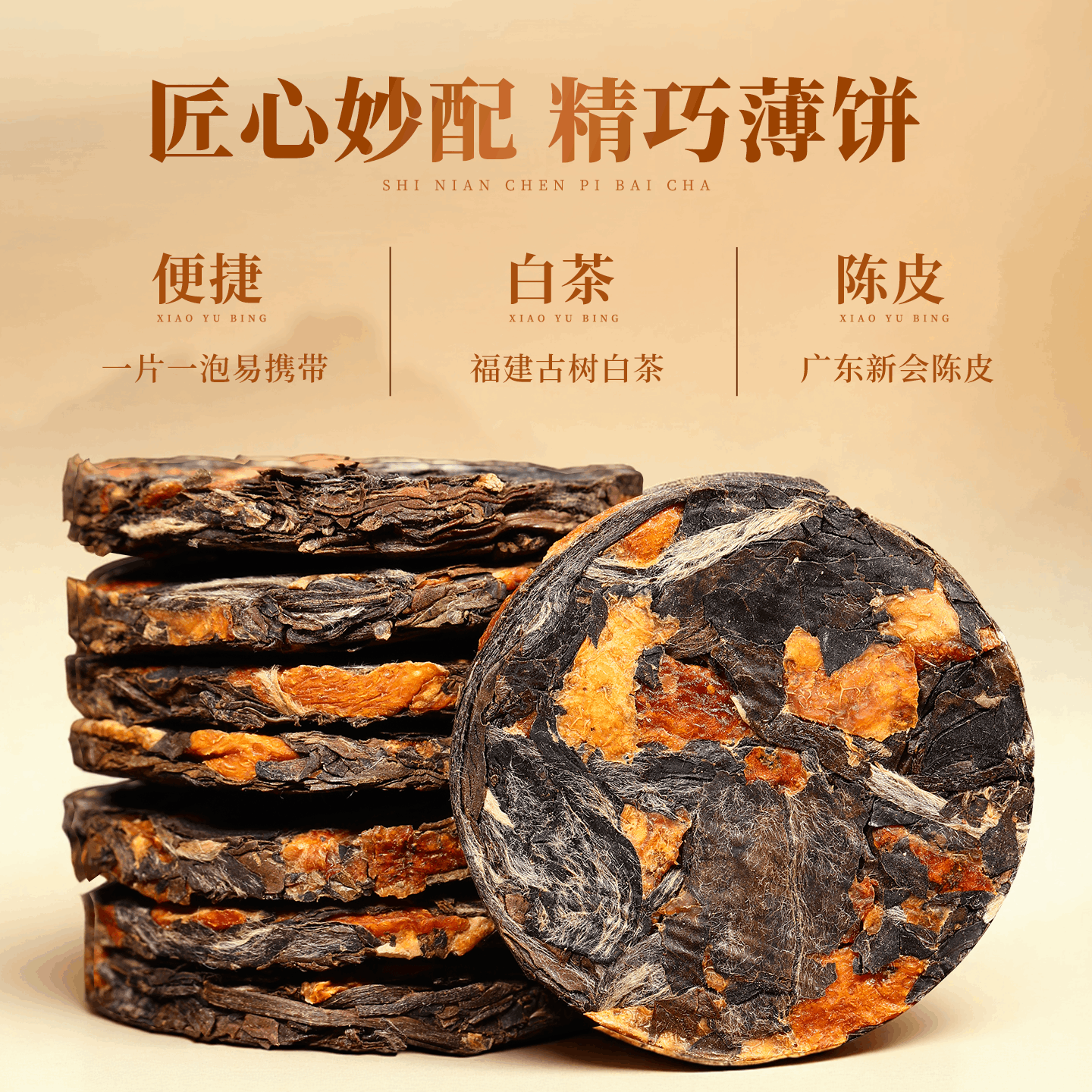 正宗福鼎十年陈老白茶小玉饼新会老陈皮白茶小方片茶叶节日送礼盒