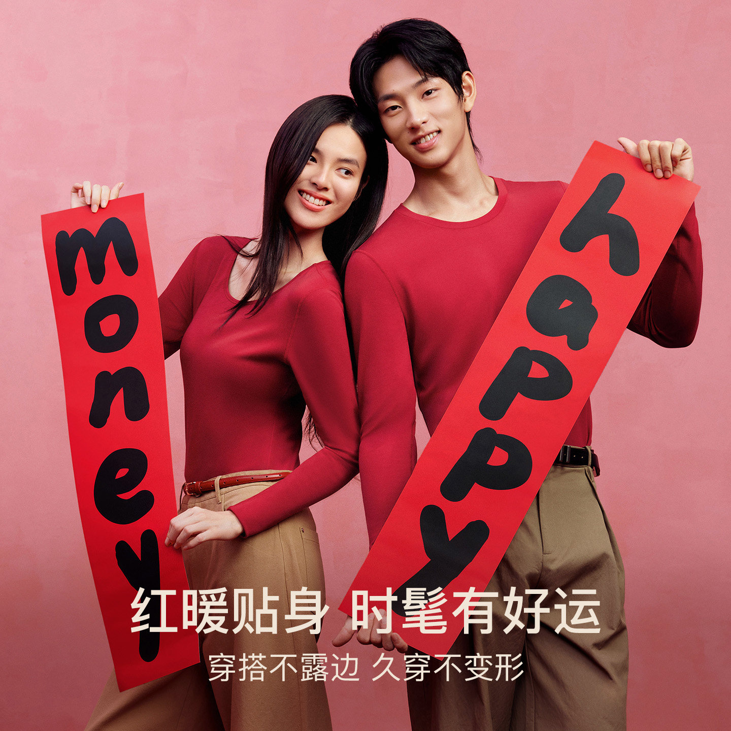 ubras本命年红色含羊毛保暖内衣套装男女结婚生肖马新年秋衣秋裤
