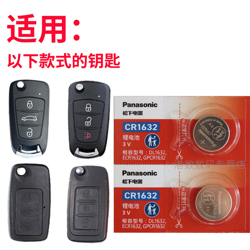 原装进口松下CR2032/CR2450 /CR1632/CR20253v纽扣电池汽车钥匙遥控器型锂电池电子适用于奥迪大众奔驰宝马等