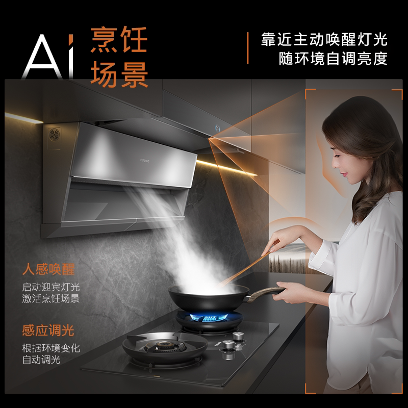COLMO大魔方顶侧双吸抽油烟机蒸汽洗厨房家用烟机灶具套装YS1K