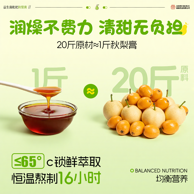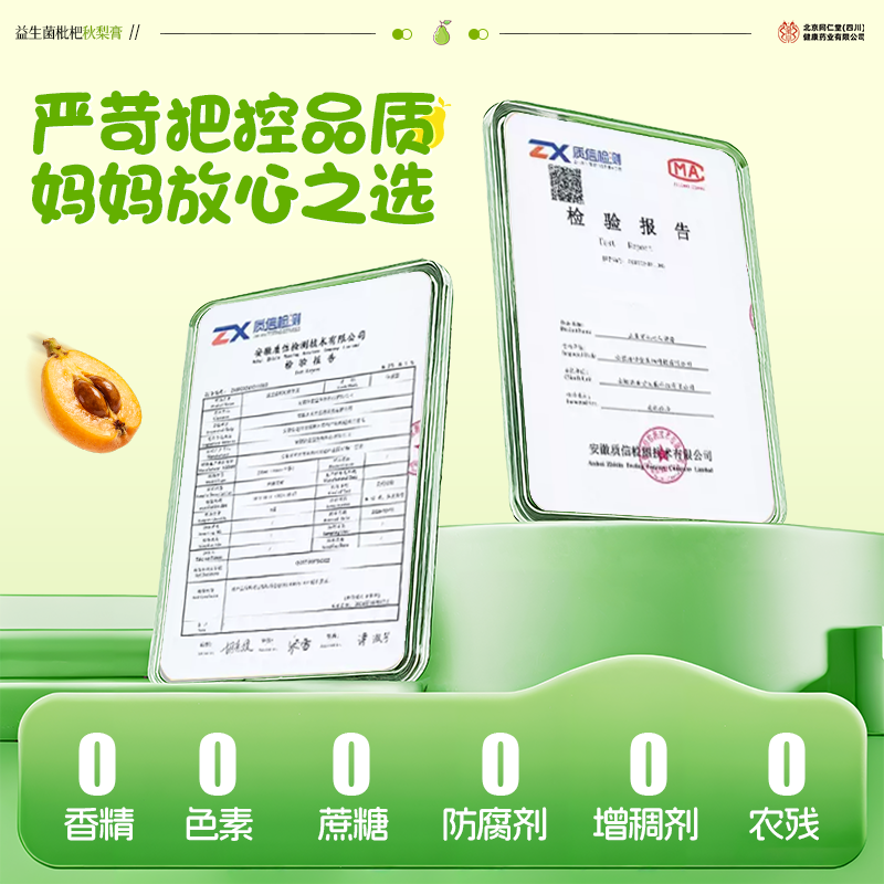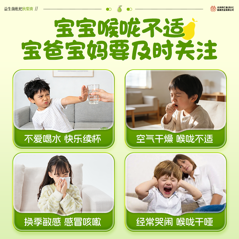 同仁堂益生菌枇杷秋梨膏润肺止咳儿童无添加婴幼儿官方旗舰店正品