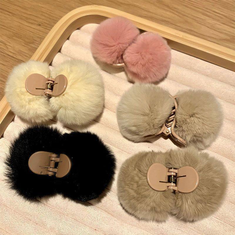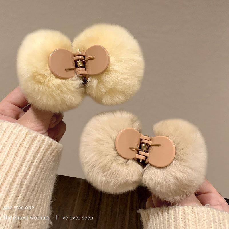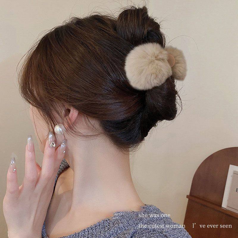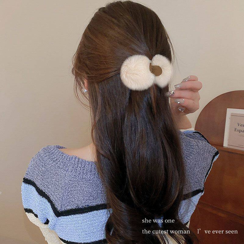 可爱毛毛绒抓夹女小号2024新款高级感半扎发夹秋冬后脑勺夹子头饰